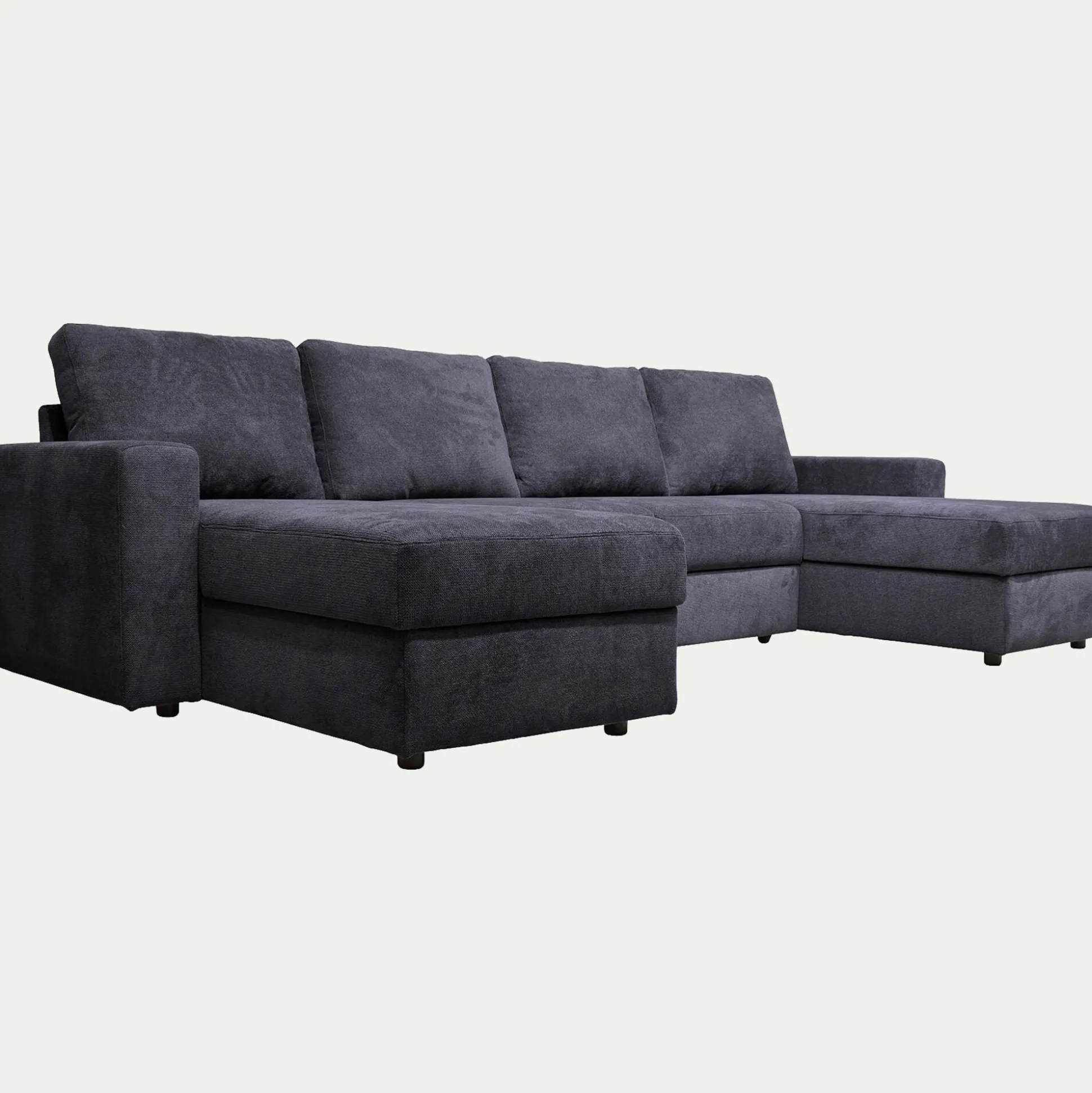 - Canapé d’angle réversible convertible en tissu tramé – bleu calabrun