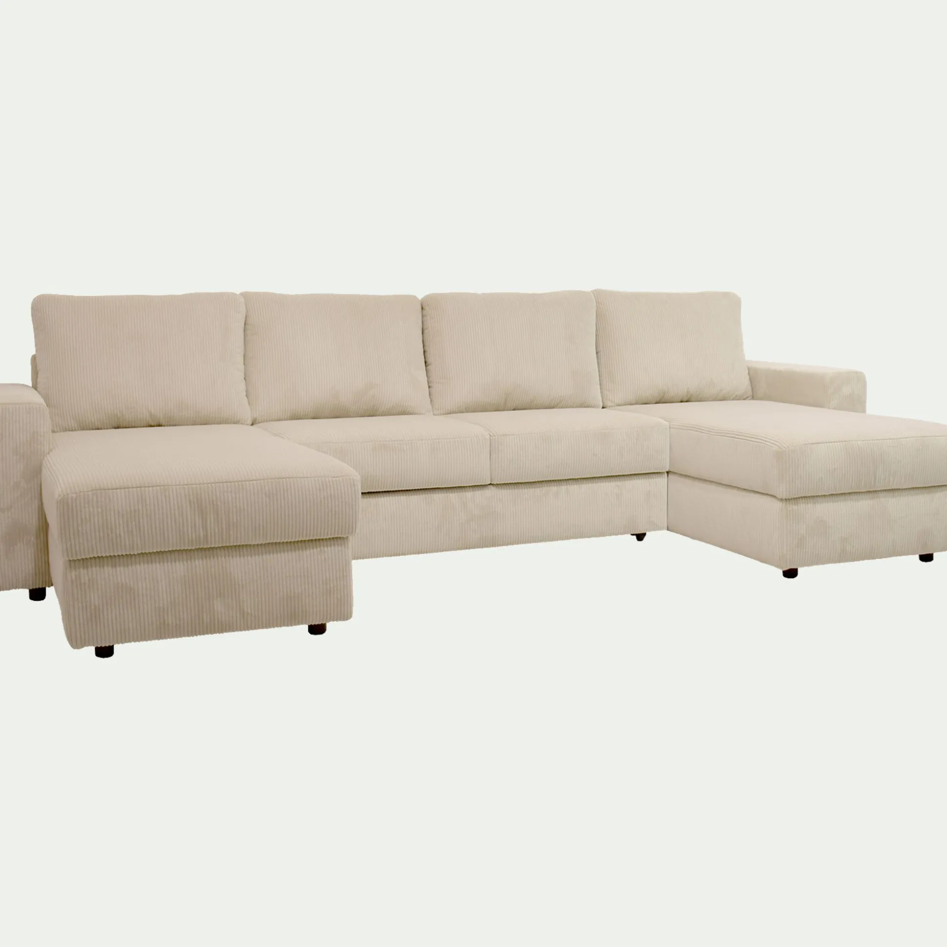 - Canapé d’angle réversible convertible en velours côtelé – blanc ventoux