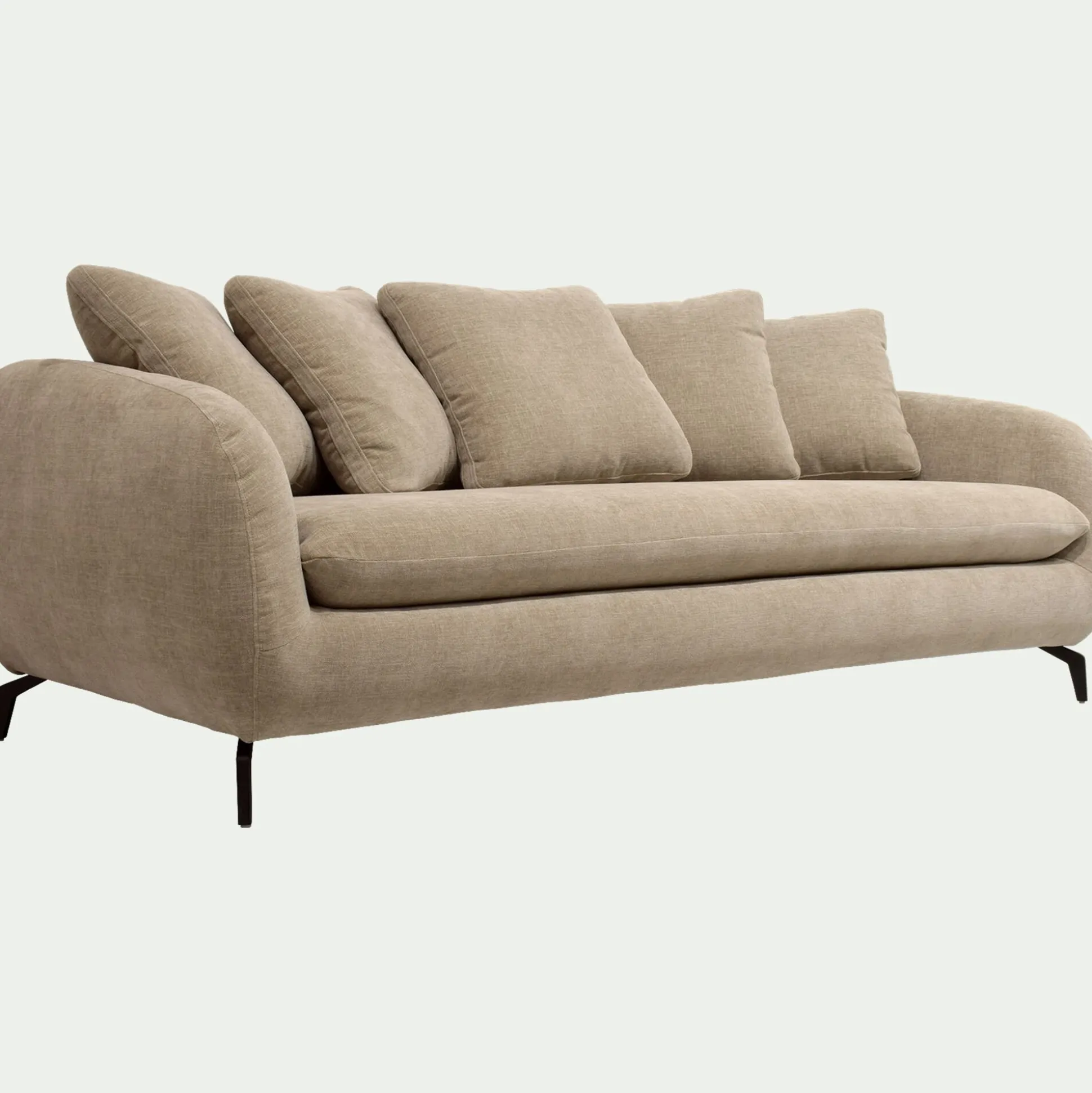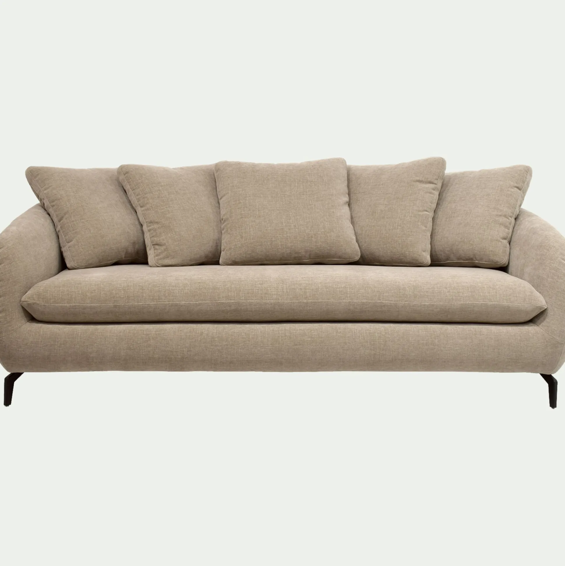 Un joli canapé fixe en tissu pour profiter agréablement de votre salon. Un look contemporain et accueillant, sublimé par un piétement original en acier noir. Vous apprécierez la forme du dossier et des accoudoirs qui vous offrent un maintien optimal de votre dos pour un confort d’assise exceptionnel. Un canapé fabriqué en France, dans des ateliers proches de la ville de Bourge, qui incarne l’excellence du savoir-faire français. Un coloris beige qui apporte une note lumineuse et chaleureuse à votre déco de salon.