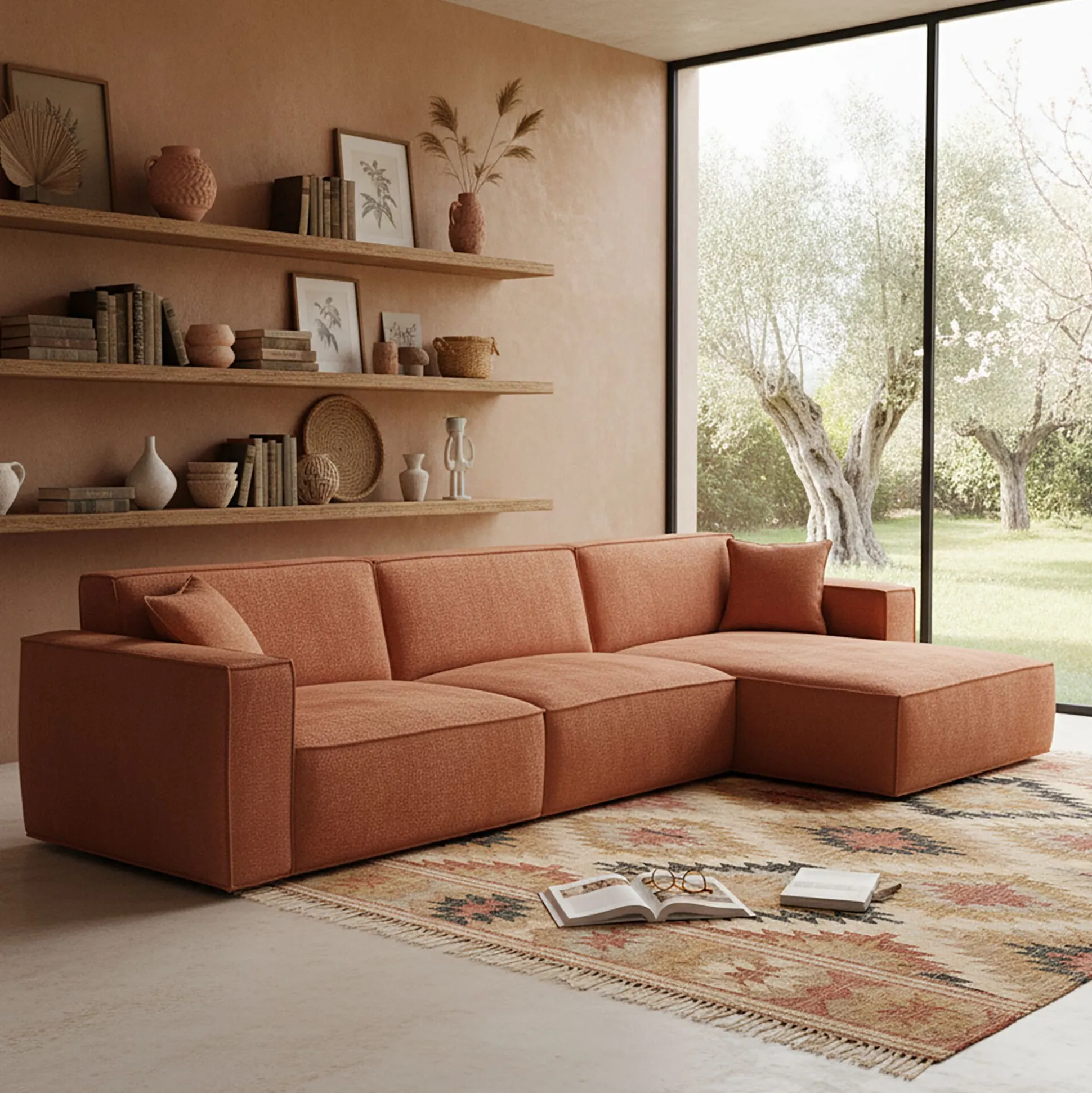 Ce joli canapé d’angle droit est parfait pour sublimer votre intérieur tout en vous permettant de vous prélasser. Avec ses formes rectangulaires définies, ce canapé fixe donne un côté contemporain à votre salon. Il est fabriqué en Ukraine par des experts afin de vous offrir un canapé à la confection européenne avec des matériaux qualitatifs. Confortable et extrêmement moelleux, il vous permet de recevoir famille et amis sur une assise généreuse. Son tissu tramé de couleur brun rustrel apporte de la luminosité à votre pièce pour une décoration chic et moderne.