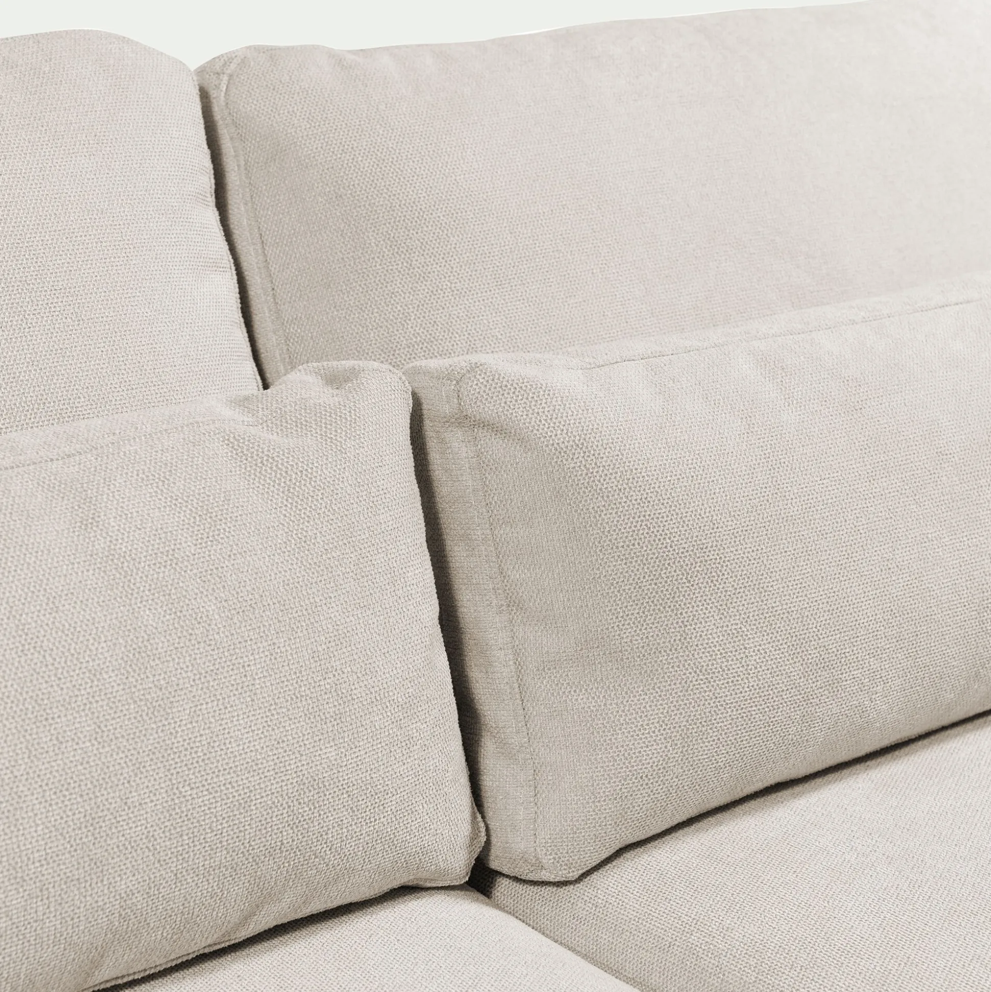 Ce canapé grand angle extrêmement confortable sera parfait pour vous relaxer. Fabriqué en Europe, il constitue le canapé fixe idéal pour recevoir vos convives grâce à ses 5 places assises. Son revêtement en tissu doux apportera une touche chaleureuse à l’ensemble de votre salon. Sa couleur beige roucas, ajoutera une touche de modernité à votre intérieur. Ce canapé angle droit sublimera votre salon.