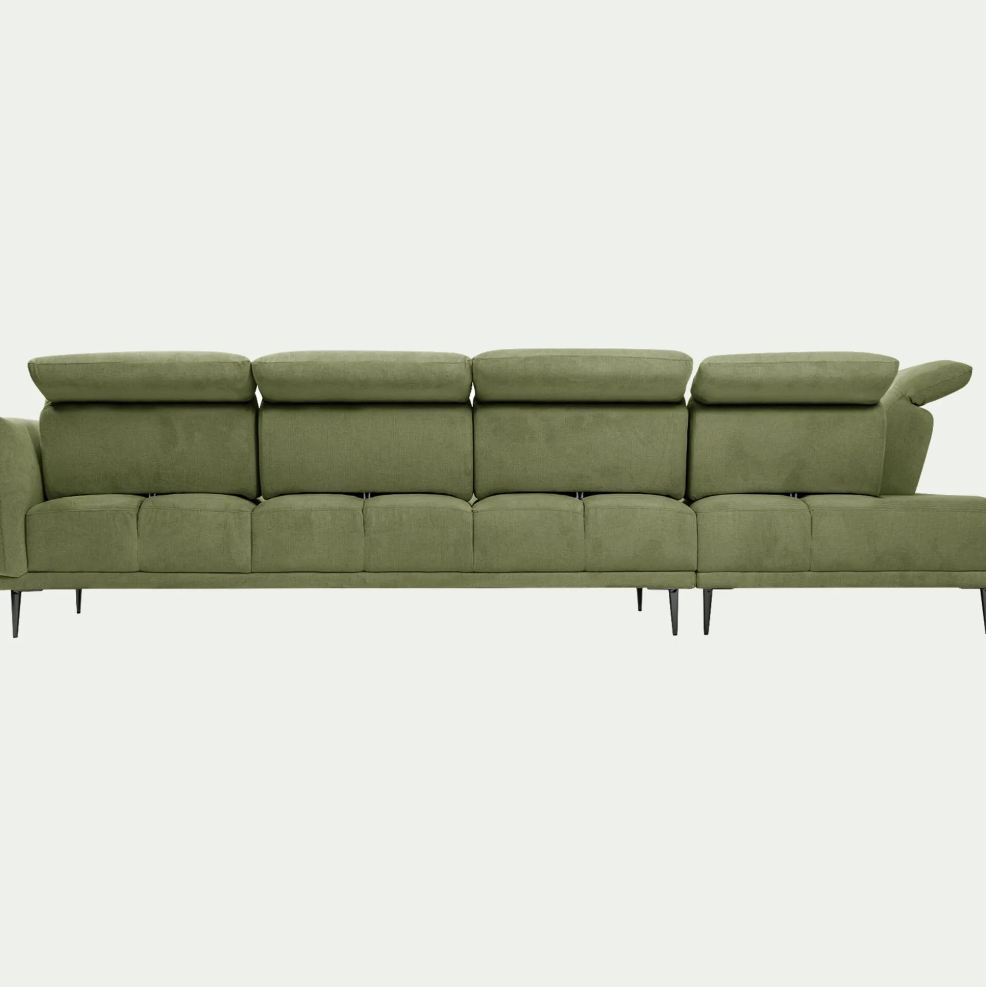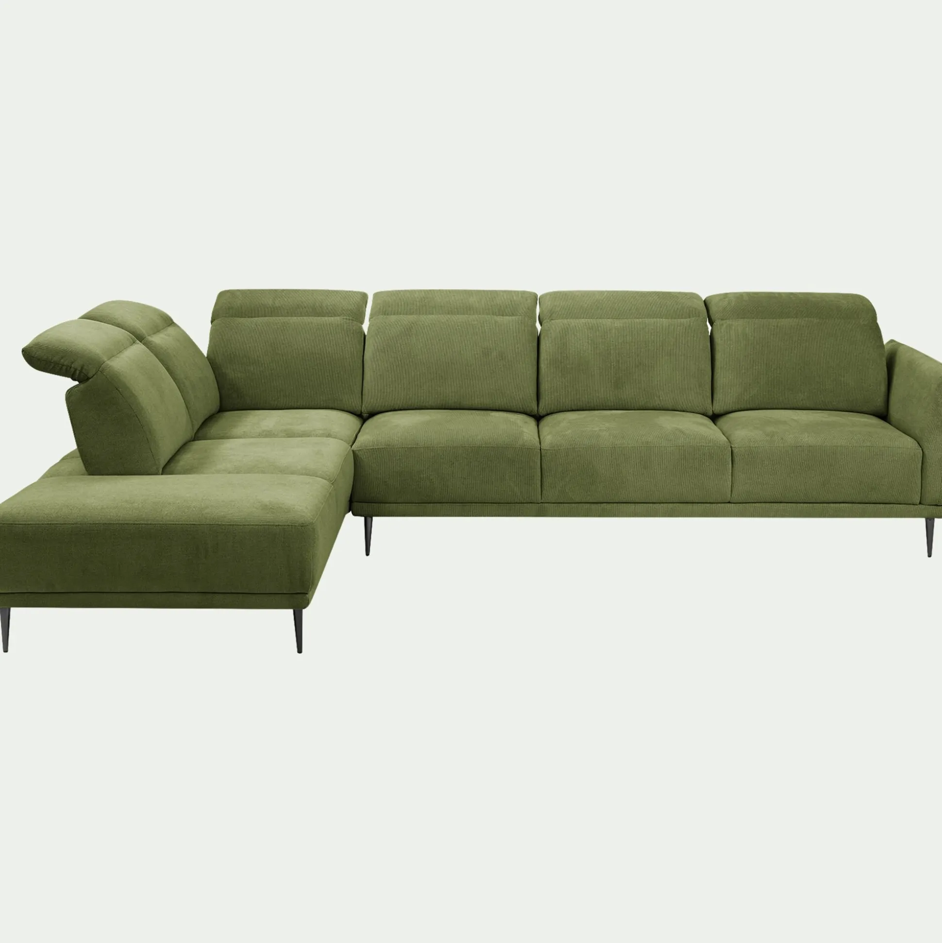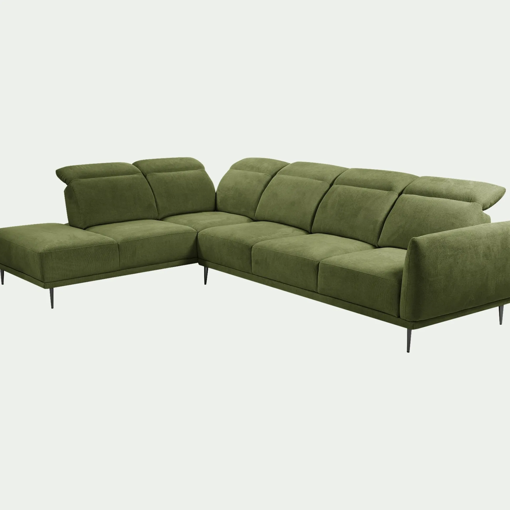 Canapé grand d’angle gauche en tissu memphis avec fonction avance-recul – vert cèdre