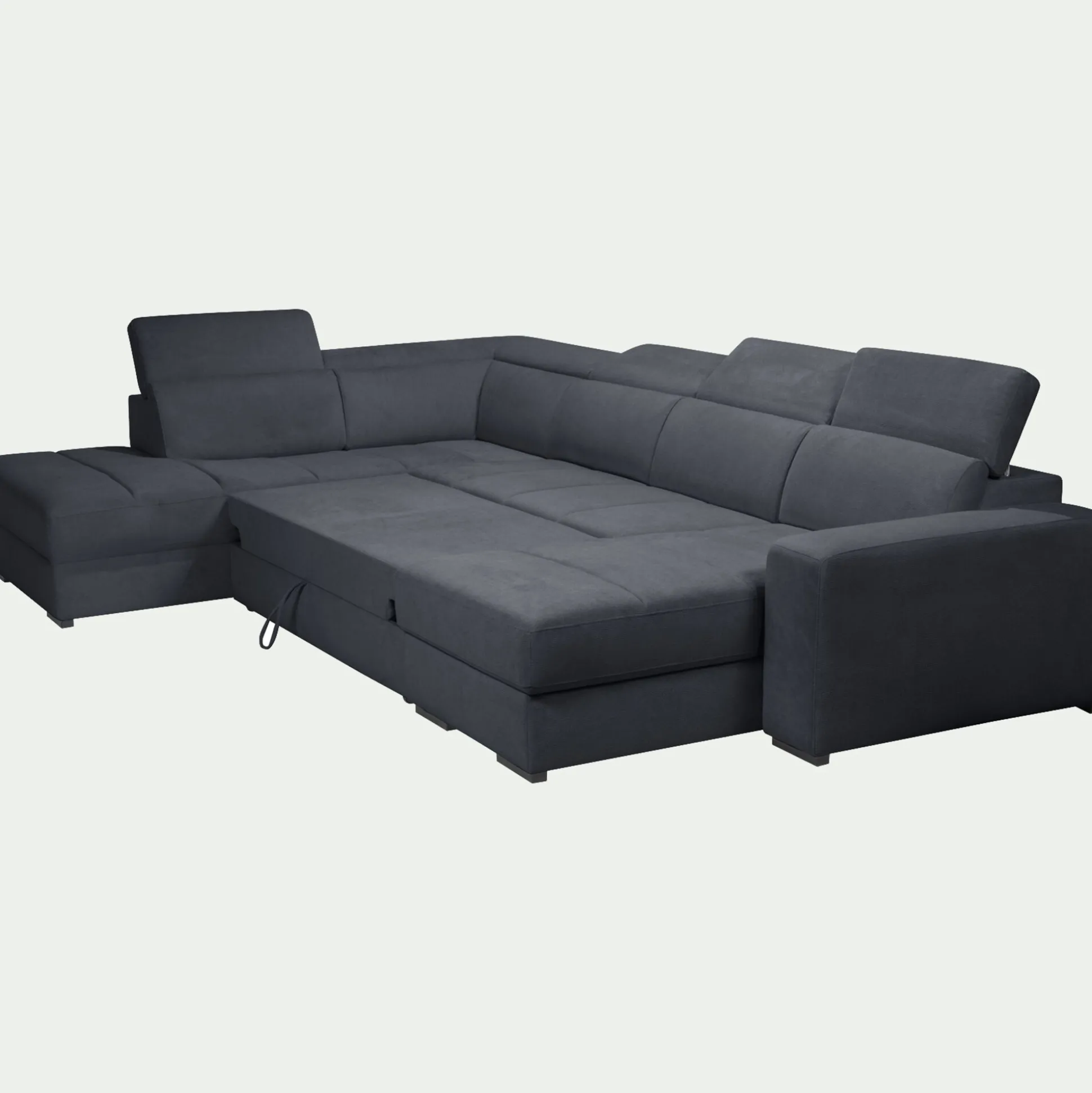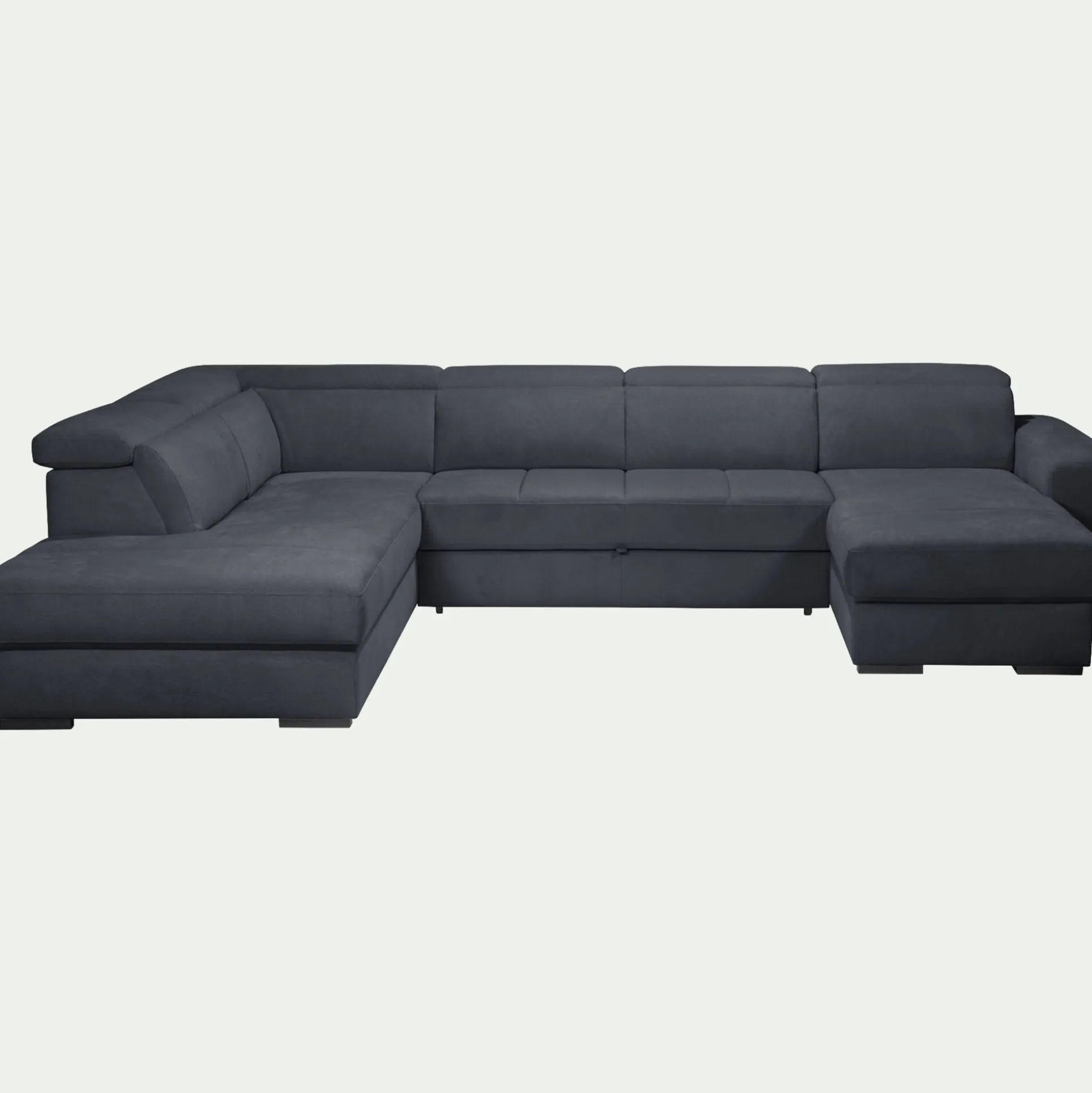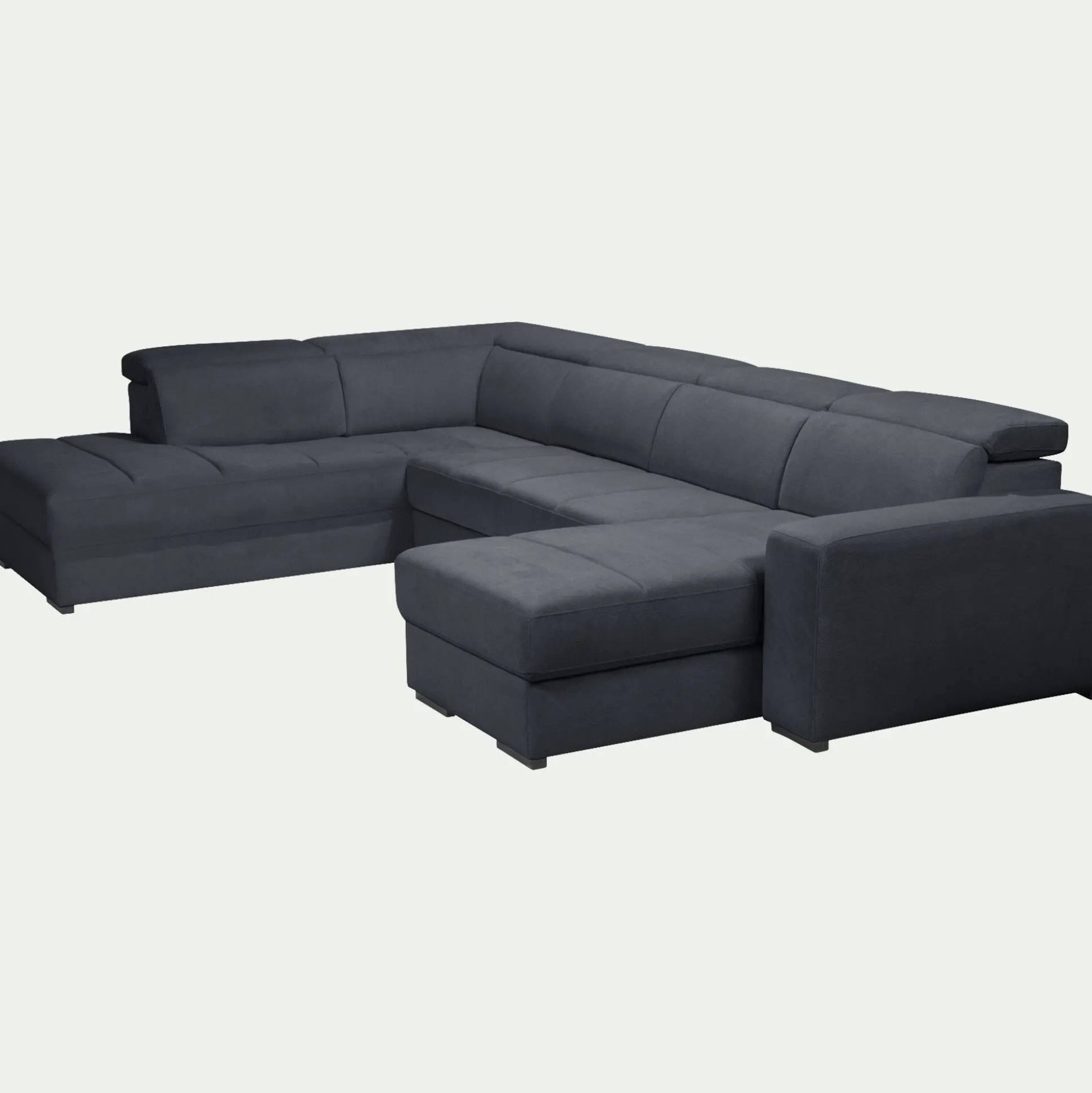 Canapé panoramique convertible avec méridienne droite en tissu doux – bleu calabrun