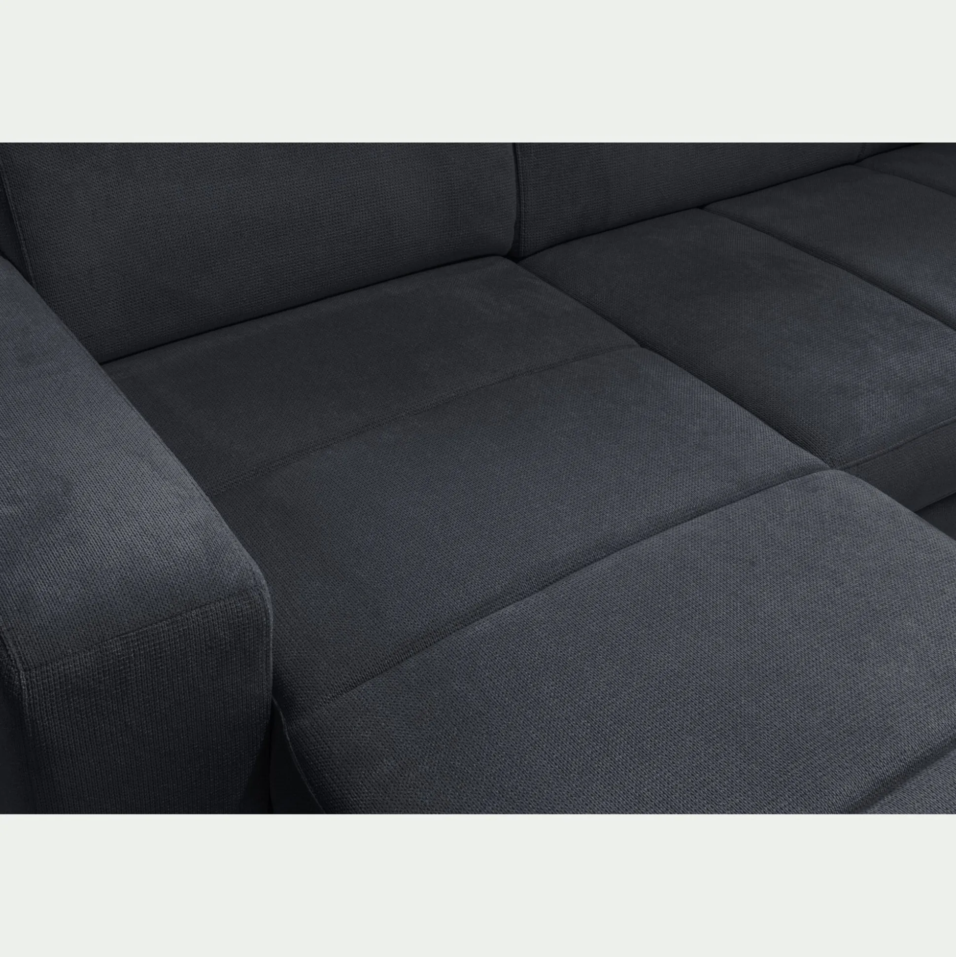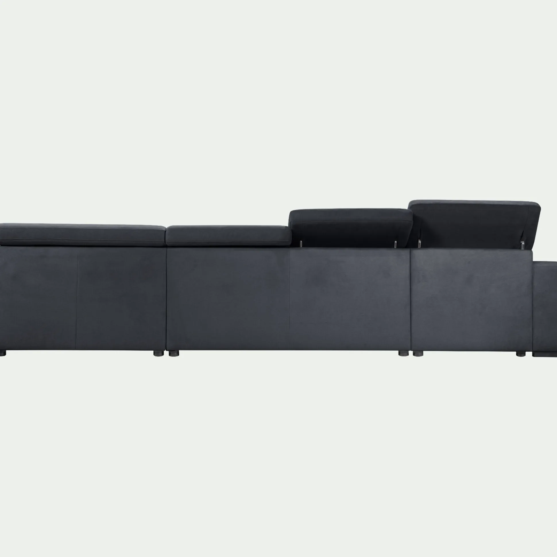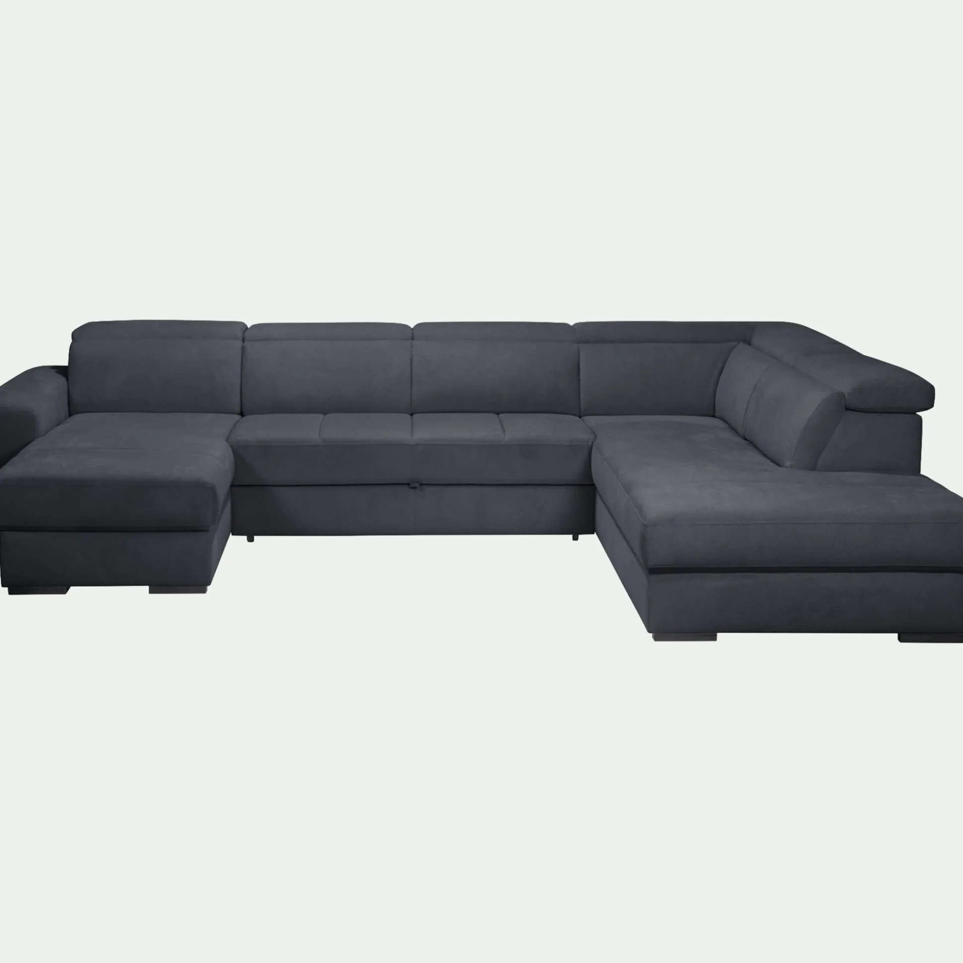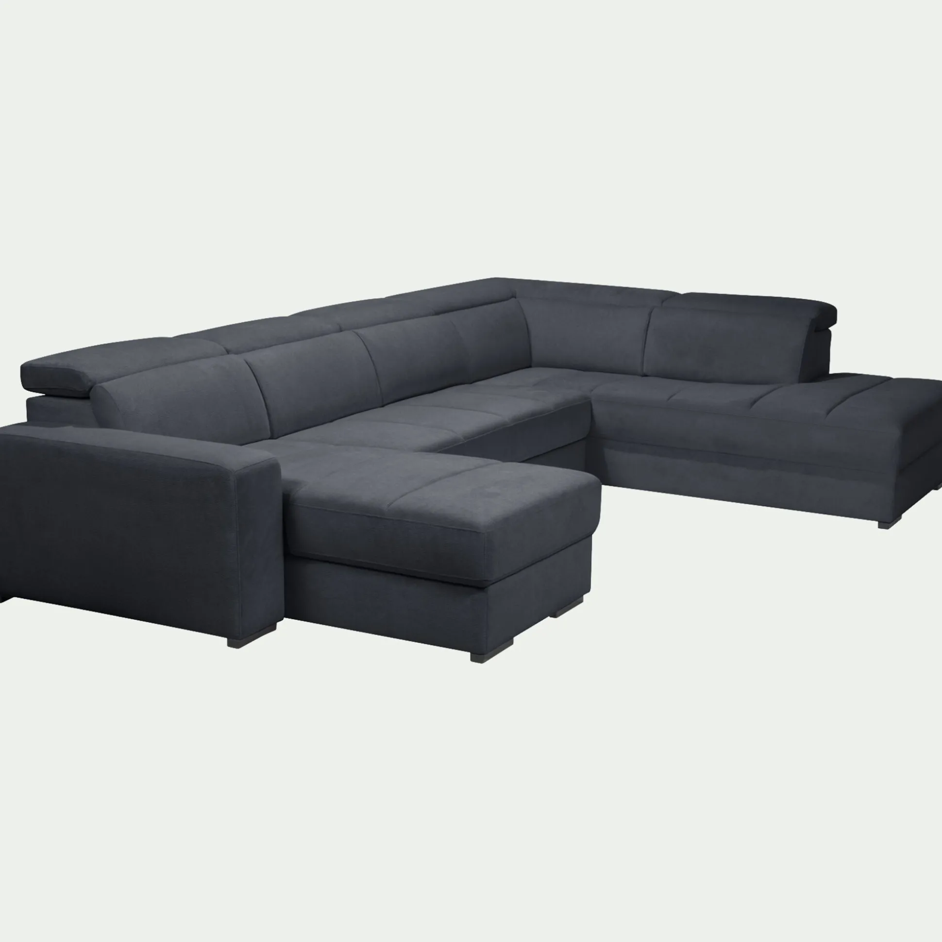 Canapé panoramique convertible avec méridienne gauche en tissu doux – bleu calabrun
