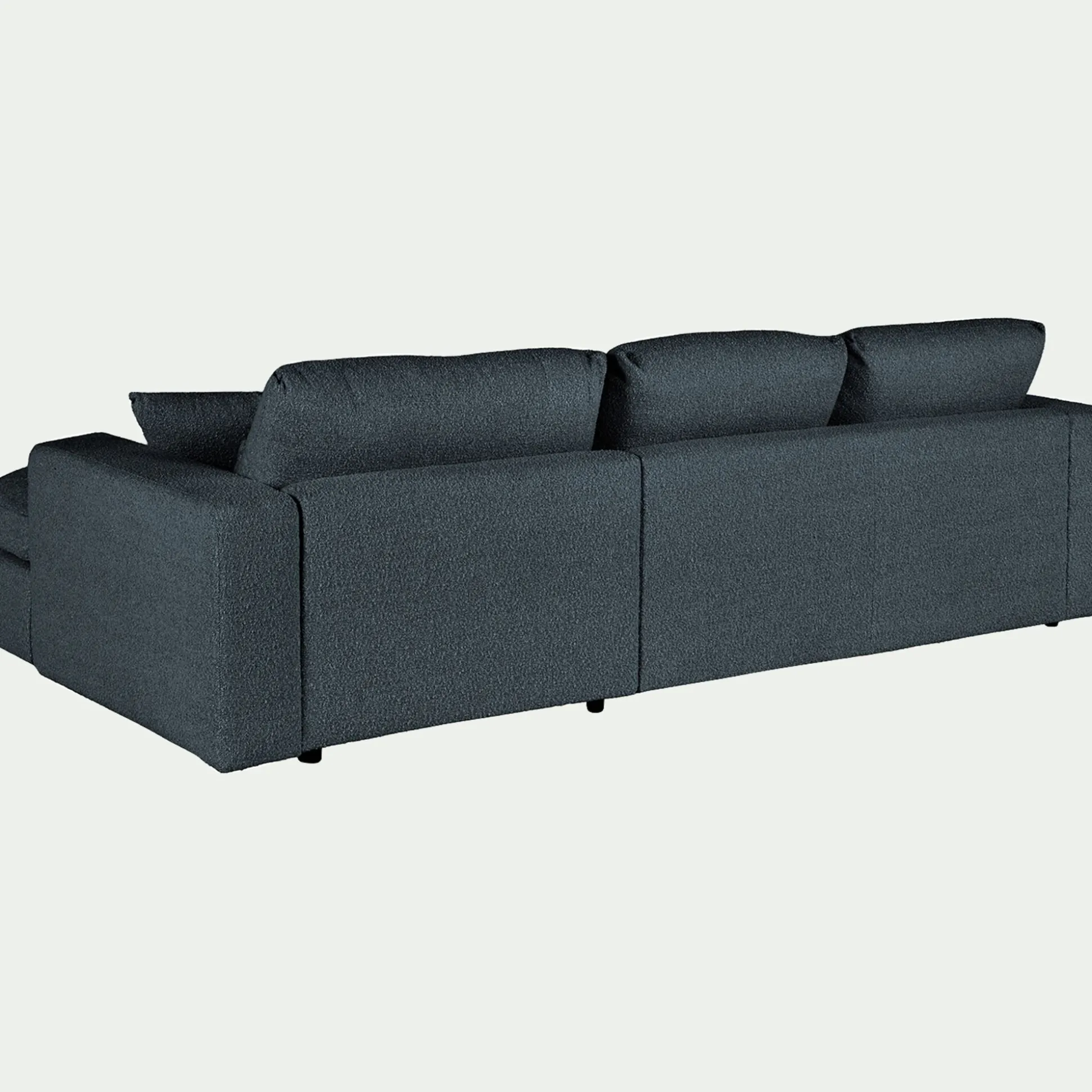 Avec son petit angle à gauche, ce canapé d’angle est une invitation aux moments partagés. Son revêtement en tissu bouclette, à la fois doux et résistant, enveloppe l’espace d’une chaleur réconfortante. Son coloris bleu, intemporel, s’harmonise avec tous les styles d’intérieur. Pensé pour le confort, ce canapé fixe se compose d’une assise spacieuse, d’un dossier accueillant et de coussins déhoussables pour un entretien facilité. Des coussins décoratifs viennent parfaire l’ensemble, ajoutant une touche cosy. Un canapé idéal pour des instants de détente en famille ou entre amis.