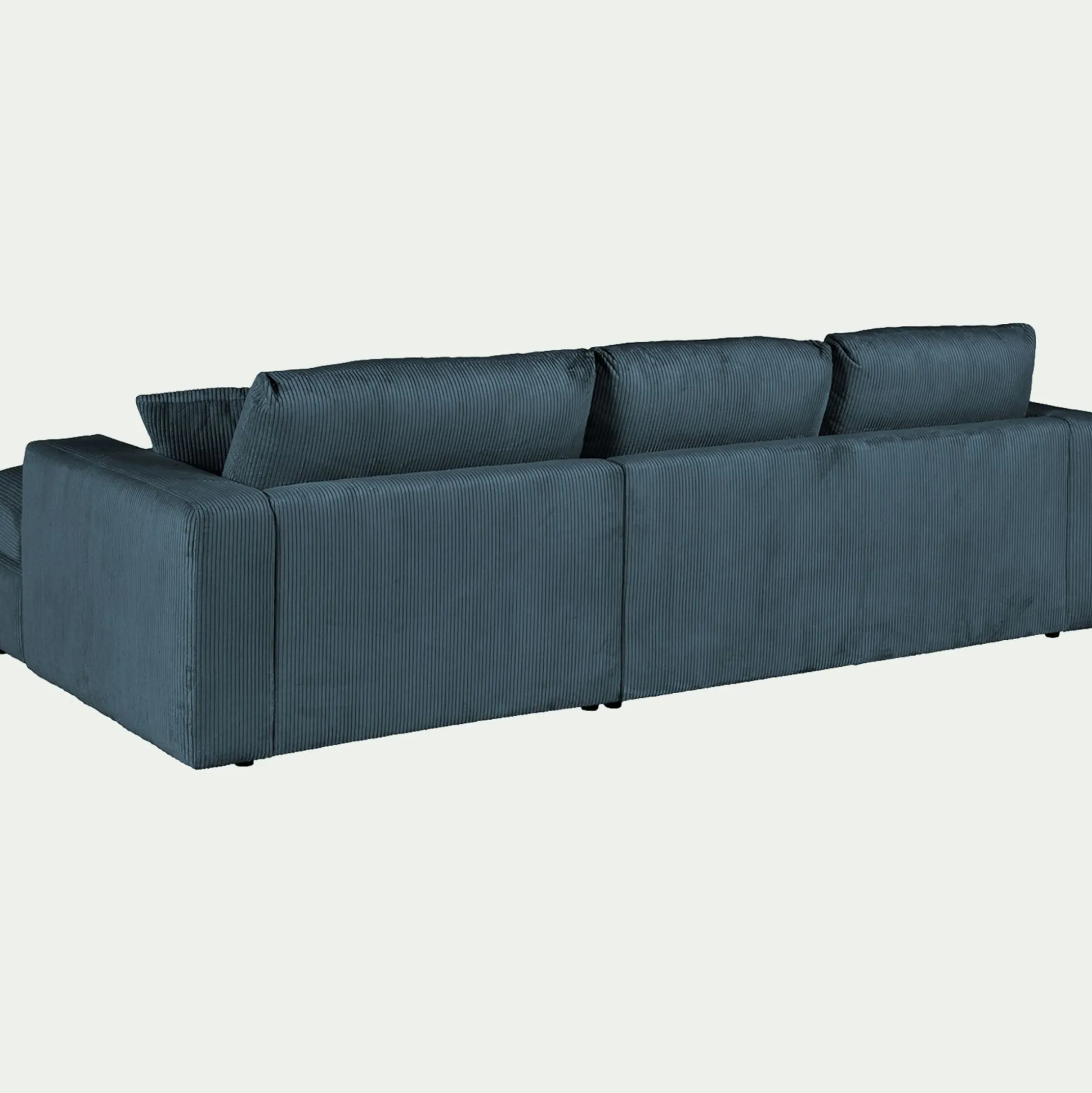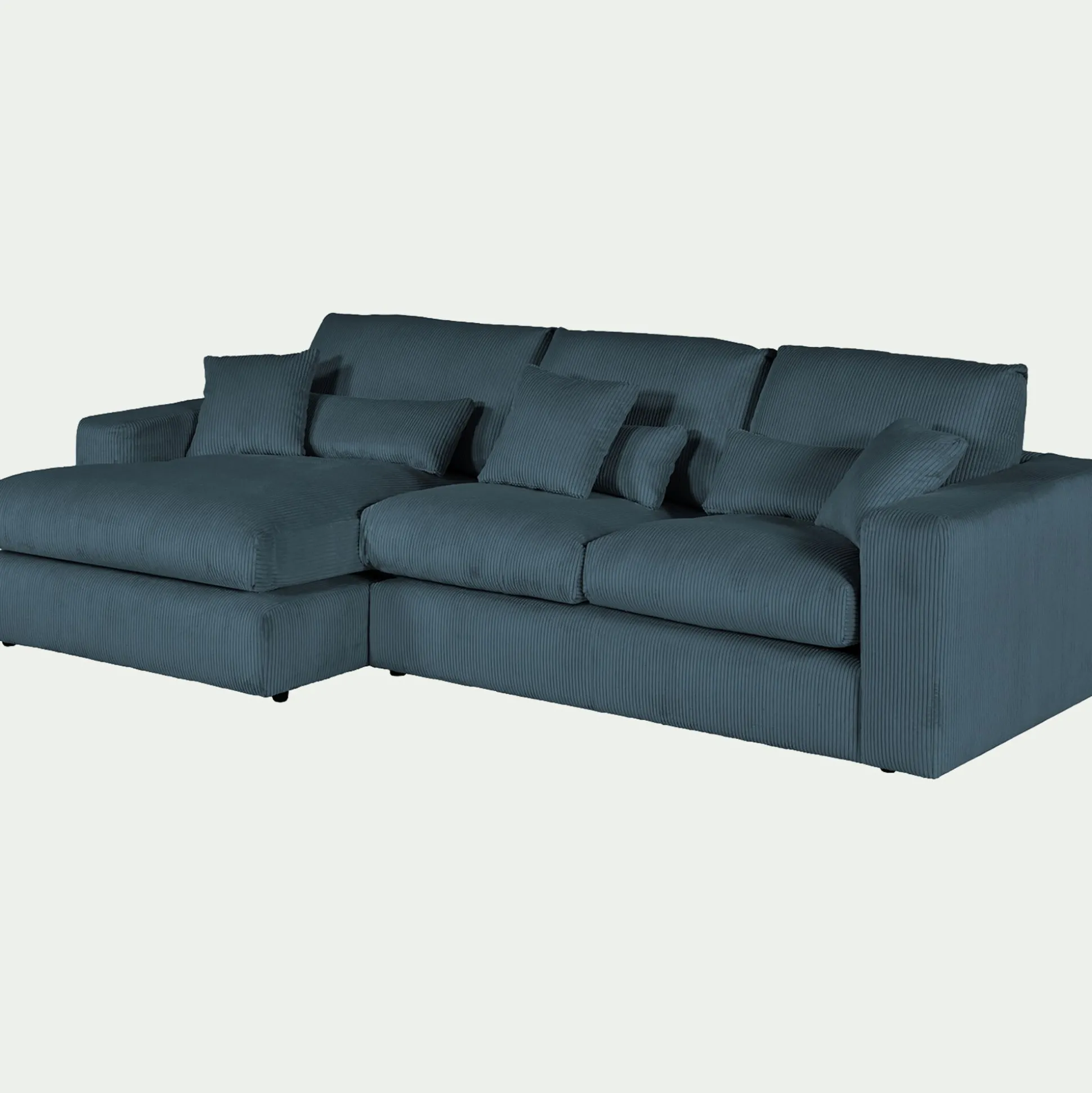 Avec son petit angle à gauche, ce canapé d’angle est une invitation aux moments partagés. Son revêtement en velours côtelé, à la fois doux et résistant, enveloppe l’espace d’une chaleur réconfortante. Son coloris bleu, élégant, s’harmonise avec tous les styles d’intérieur. Pensé pour le confort, ce canapé fixe se compose d’une assise spacieuse, d’un dossier accueillant et de coussins déhoussables pour un entretien facilité. Des coussins décoratifs viennent parfaire l’ensemble, ajoutant une touche cosy. Un canapé idéal pour des instants de détente en famille ou entre amis.