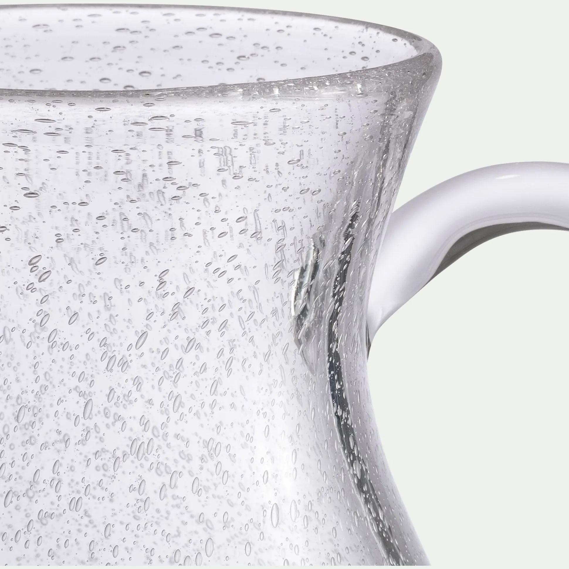 Cette carafe en verre bullé est un véritable bijou pour votre table. Ses petites bulles délicatement piégées dans le verre créent une profondeur fascinante, ajoutant une touche d’authenticité et de charme à chaque utilisation. Dans un style traditionnel, elle est dotée d’une anse qui facilite le service de l’eau. Sa transparence permet d’admirer les mouvements de l’eau, ajoutant une note rafraîchissante à votre art de la table. Ce pichet en verre combine esthétique et fonctionnalité, apportant une touche intemporelle aux repas.