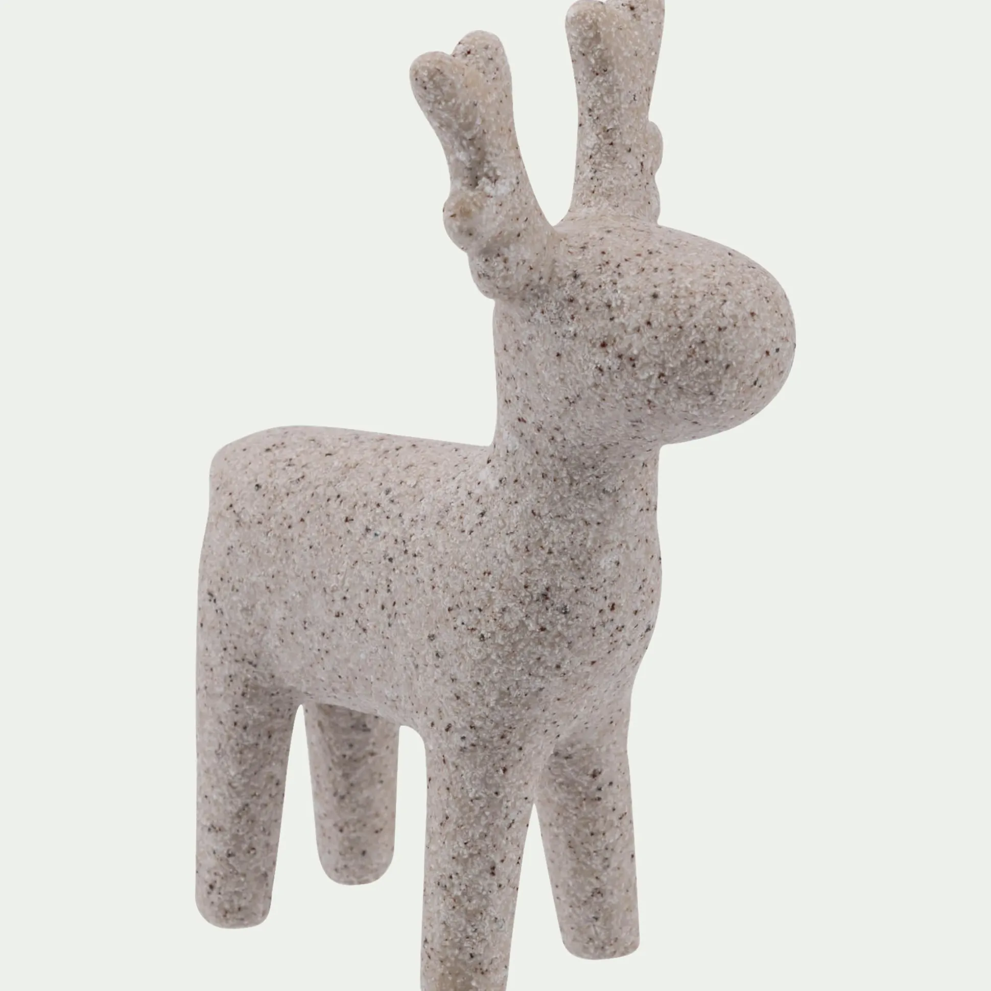 Ce duo de petits cerfs en porcelaine, faisant partie d’un assorti, invite la magie des fêtes à s’installer dans la maison. L’un beige, l’autre marron, ces deux compagnons au design épuré évoquent avec tendresse les forêts hivernales. À poser sur une commode, une étagère ou en centre de table, ils trottent avec délicatesse dans la déco, prêts à créer une ambiance féerique. Associés à quelques sapins décoratifs, ils composent un charmant paysage enneigé, parfait pour un Noël tout en douceur.