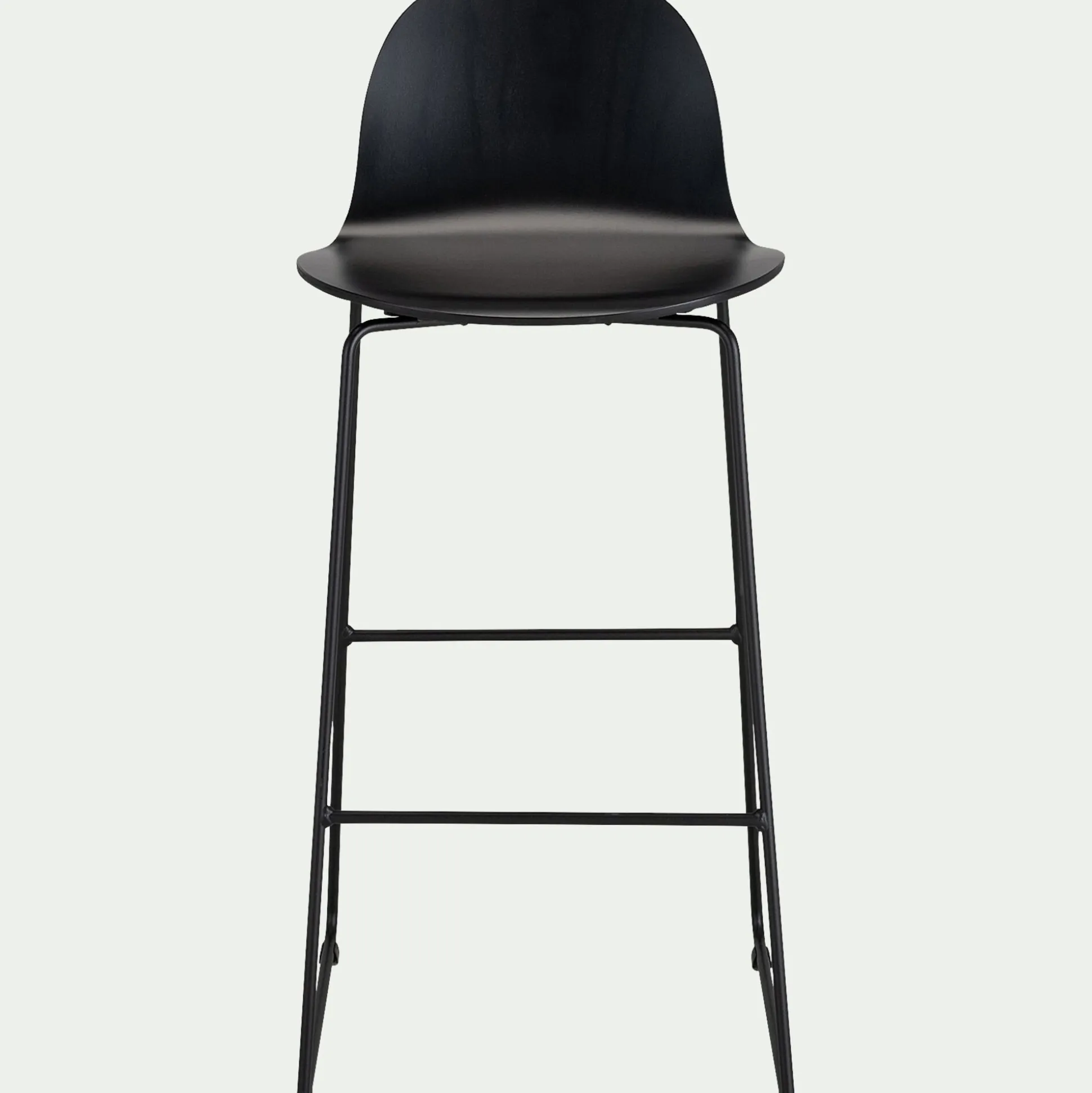 Contreplaqué moulé de hêtre teinté noir et piétement en acier époxy noir mat.