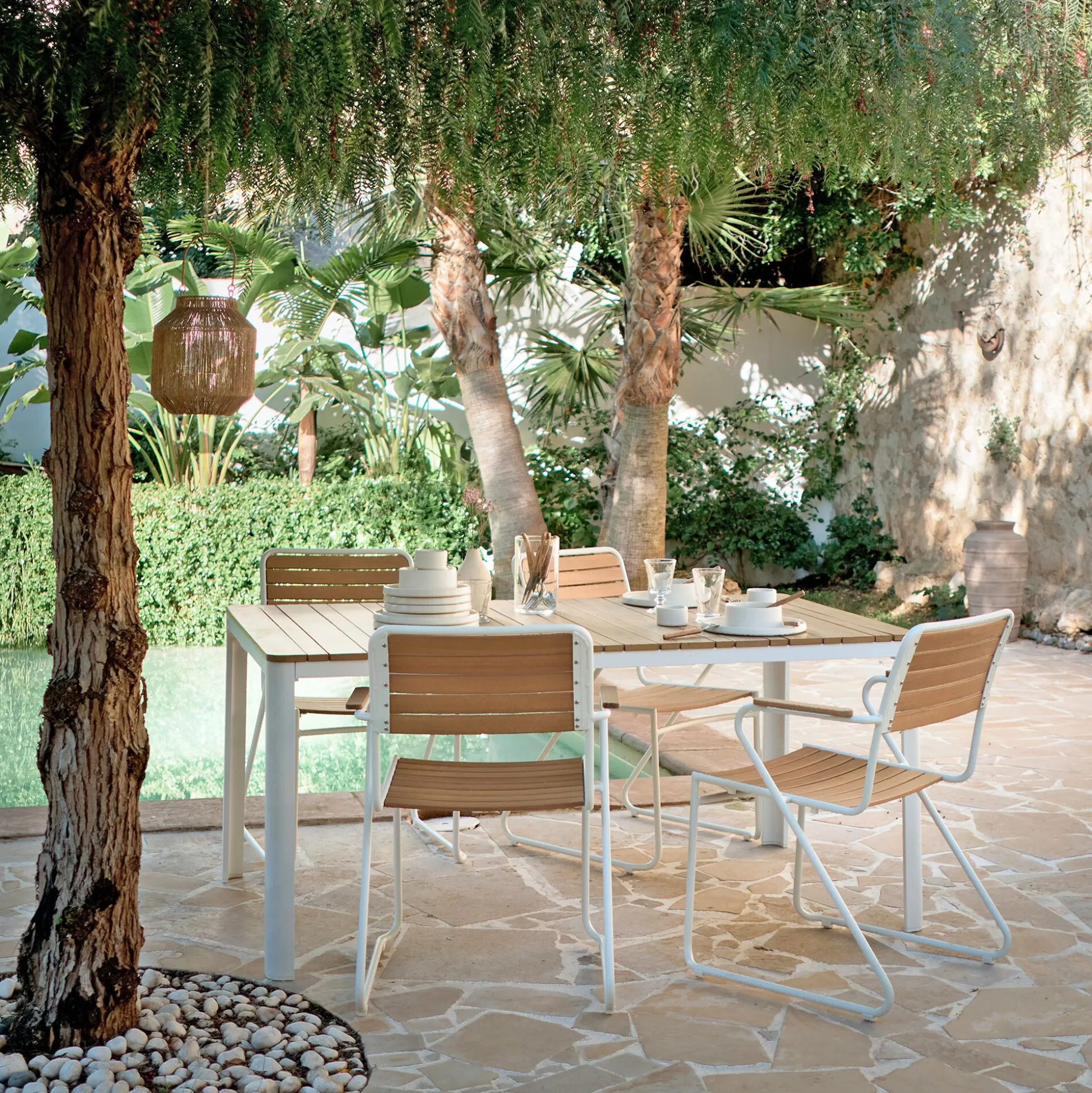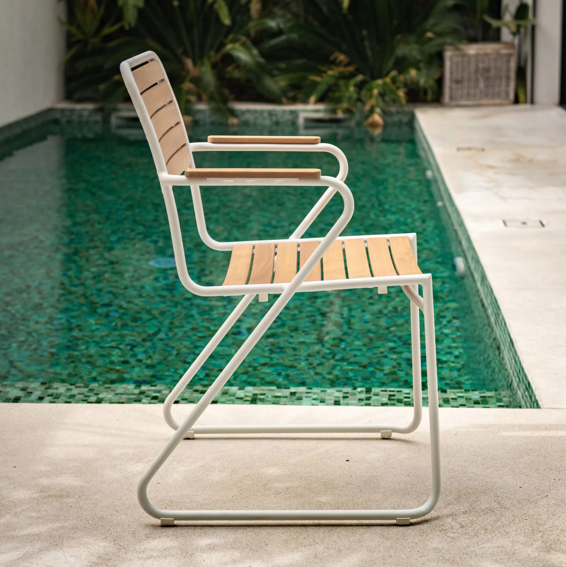 Chaise de jardin avec accoudoirs en aluminium et eucalyptus – blanc