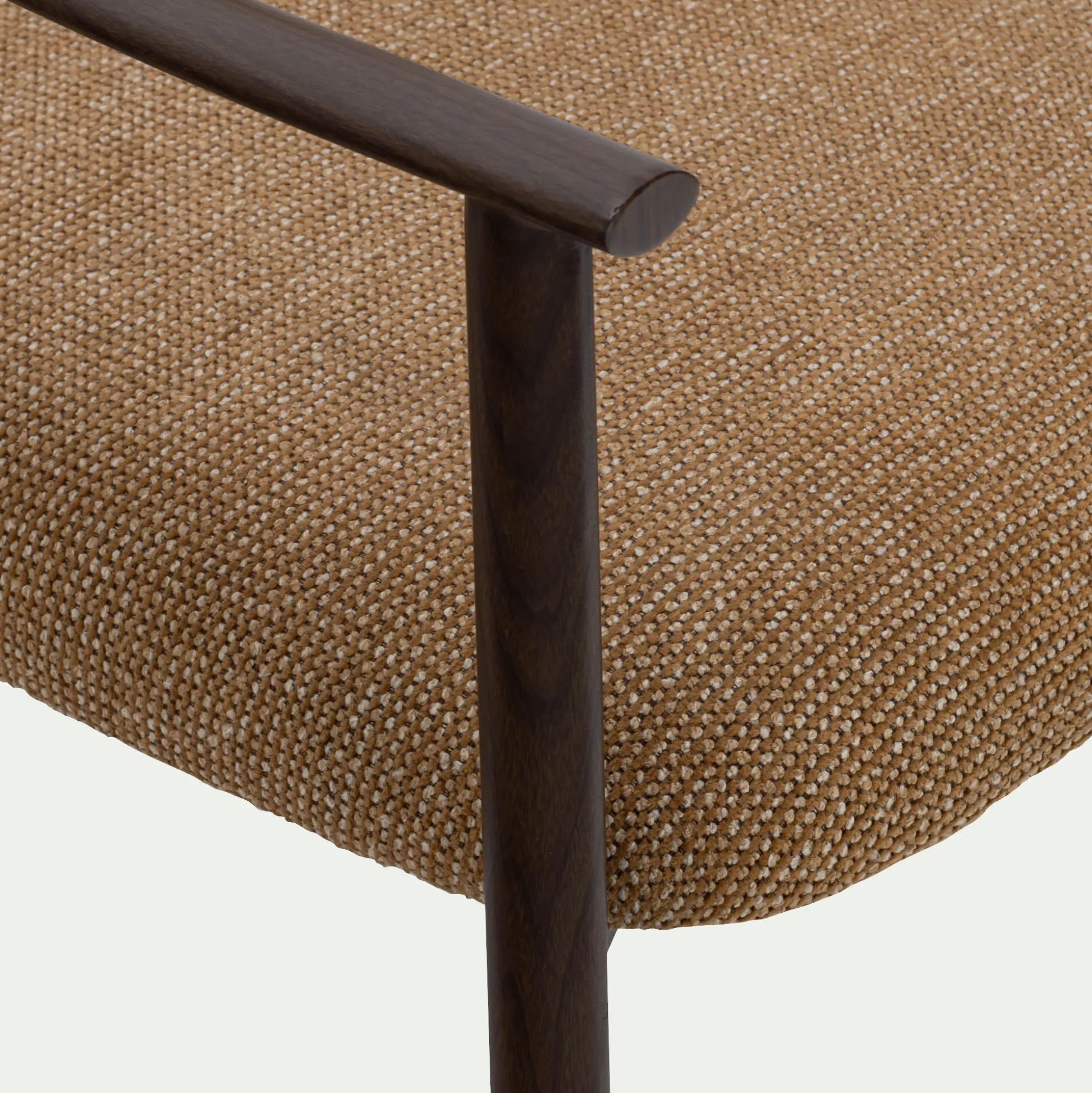Chaise de repas avec accoudoirs en tissu et acier – brun châtaignier