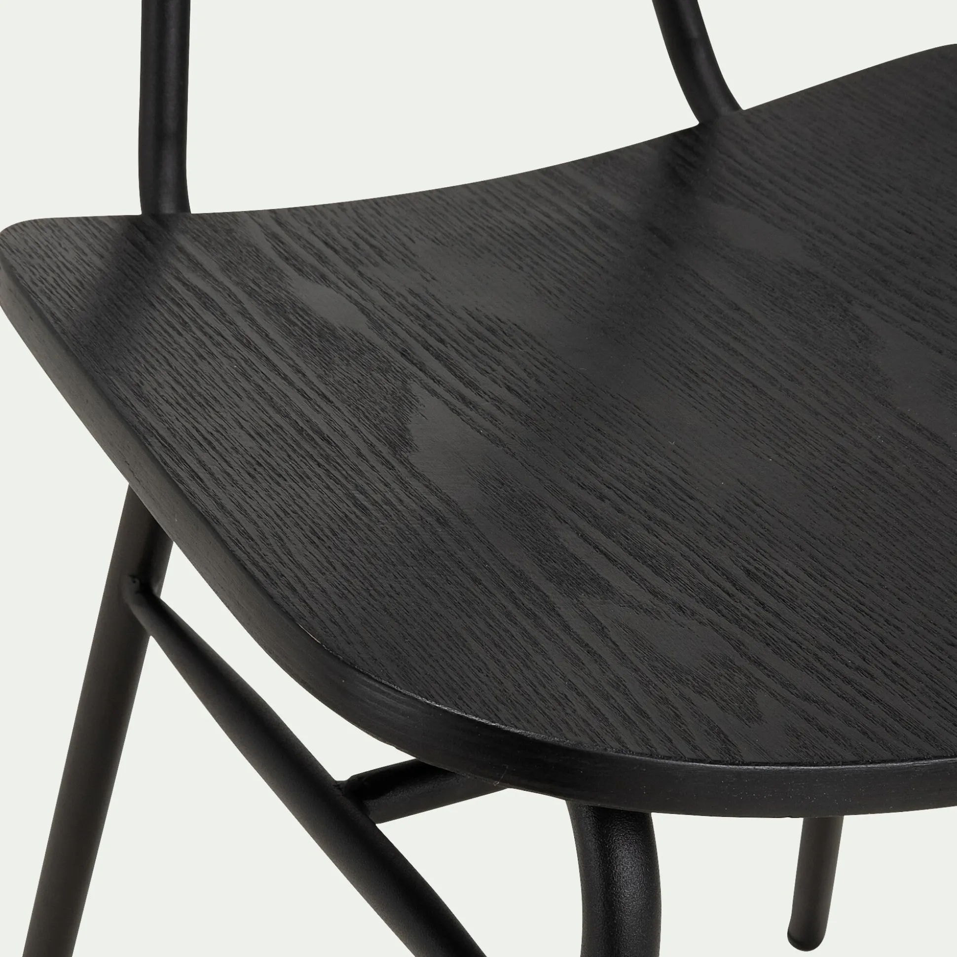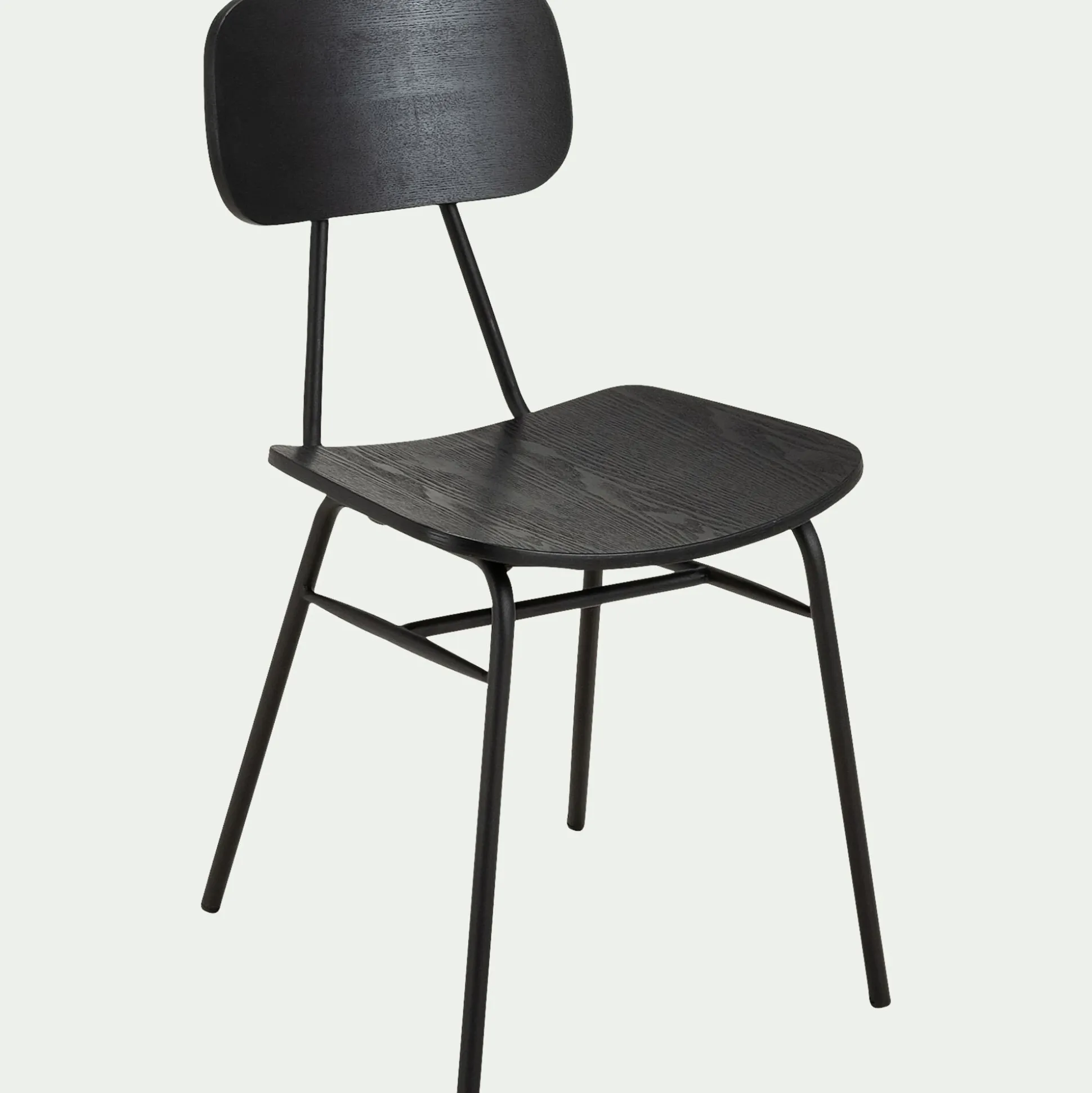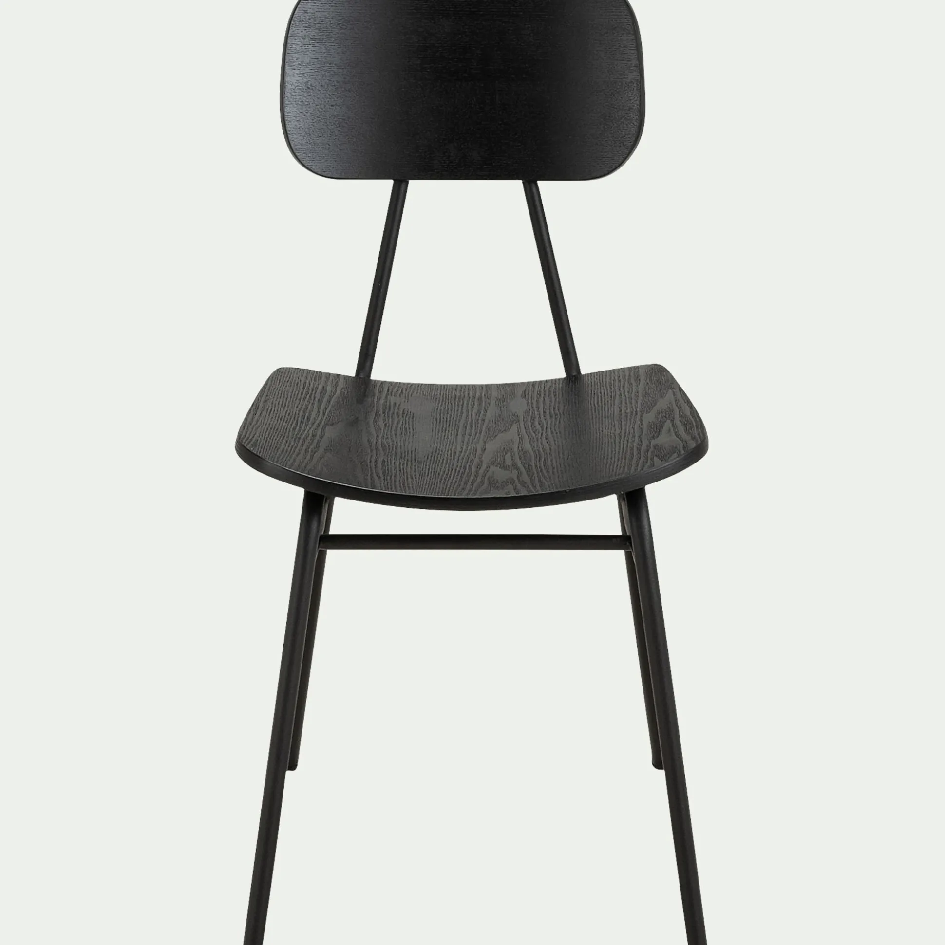 La chaise en bois Lora se situe à la frontière entre les époques. Son design résolument vintage rappelle les chaises d’écoliers des années 60. On retrouve ce style rétro dans les panneaux en bois de frêne ainsi que dans le piétement en métal noir, éléments typiques de l’époque. Un détail permet de faire le lien avec le style contemporain : la finition en vernis noir. Dossier, assise et pieds sont entièrement peints en noir, un coloris élégant et intemporel dans l’univers de la décoration d’intérieur. Sobre, cette chaise vintage se marie à toutes les tables de salle à manger. Au fil des saisons et de vos goûts, ajoutez une galette de chaise colorée pour laisser votre personnalité s’exprimer.
