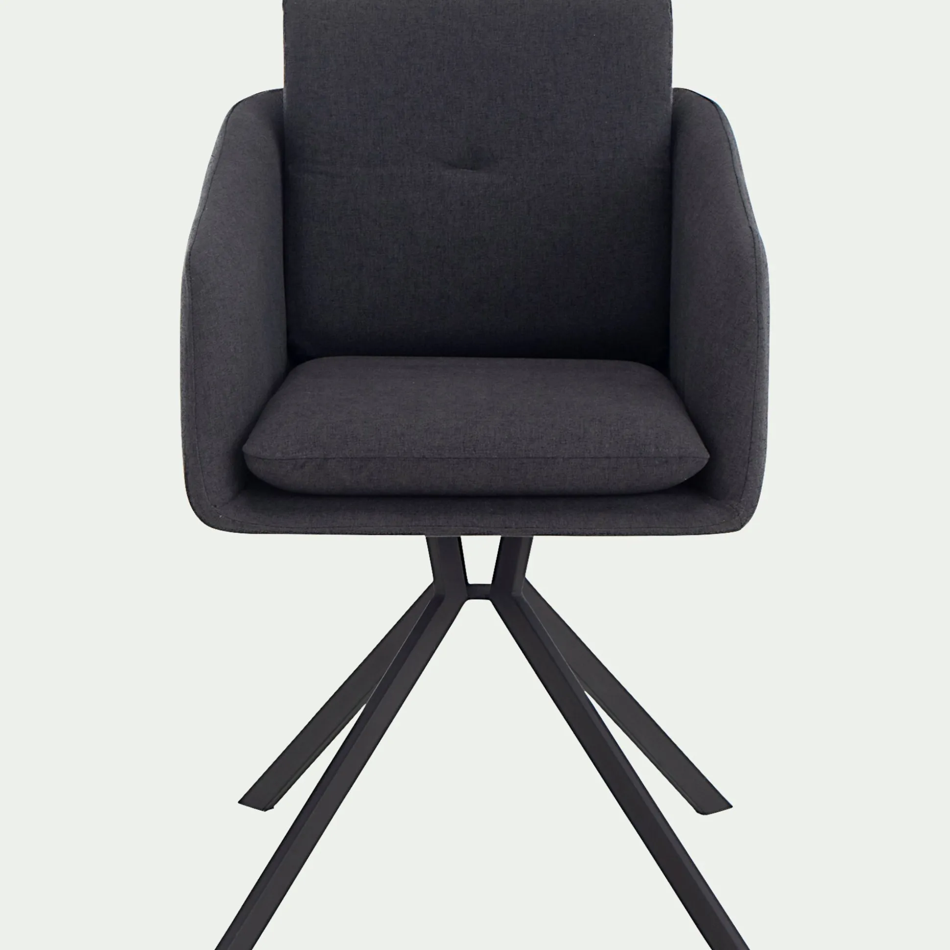 Cette chaise pivotante en tissu trouve sa place idéalement dans votre bureau ou dans la salle à manger et offre une assise confortable et enveloppante grâce à la présence d’accoudoirs. Pivotante, vous serez confortablement installés pour travailler, lire ou écrire. Son coloris noir est élégant et moderne et s’accorde avec le reste de votre décoration et son style épuré ajoute à votre intérieur un côté contemporain.