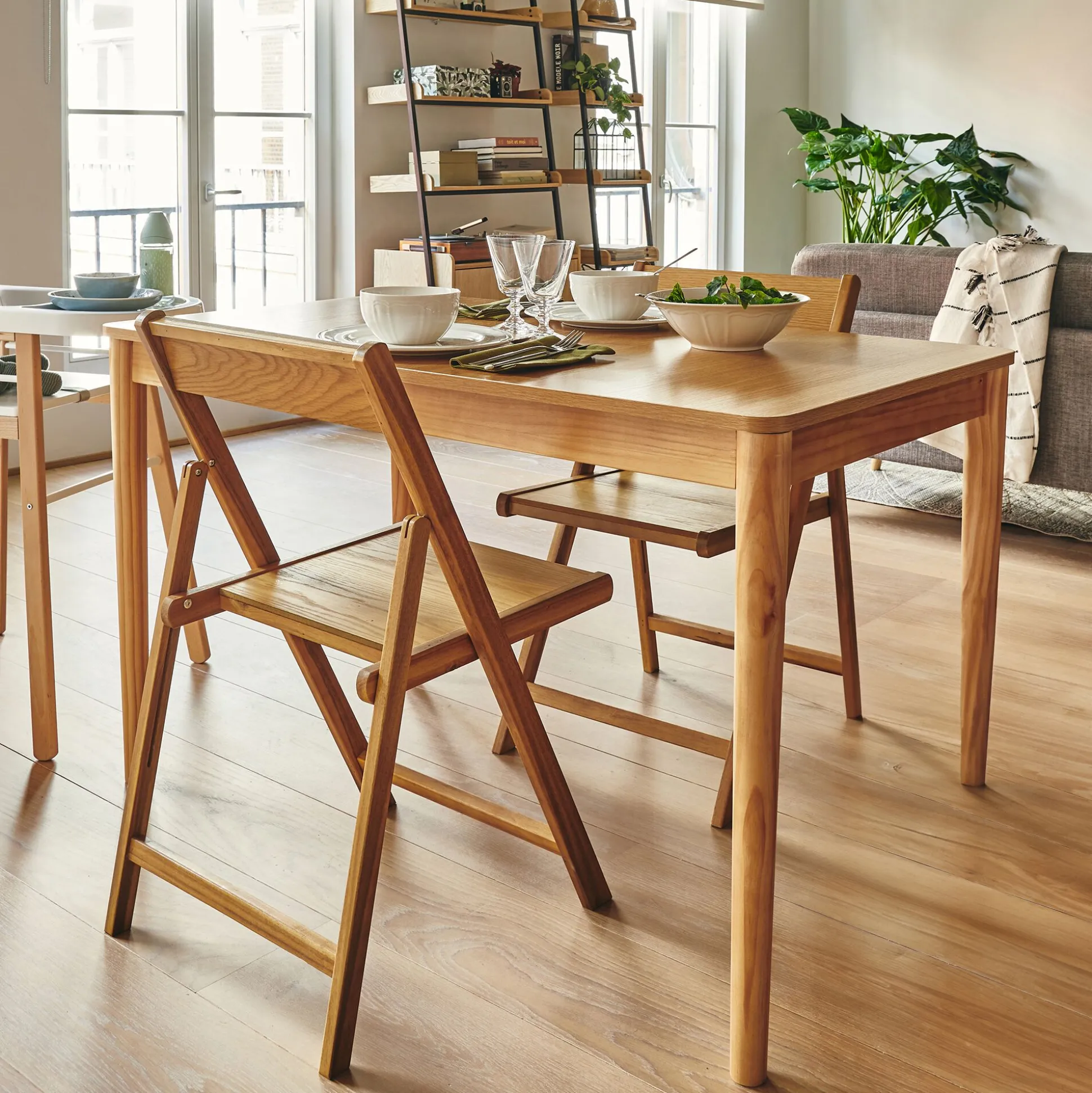 Découvrez Julia, cette jolie chaise pliante en bois plaqué. Légère, confortable et efficace, elle est idéale pour de petits espaces. Elle est facilement maniable et se range sans grande difficulté. De couleur naturelle, elle est recouverte de lasure, afin de préserver sa matière dans le temps. Son effet bois, vous permet de l’associer facilement avec votre déco.