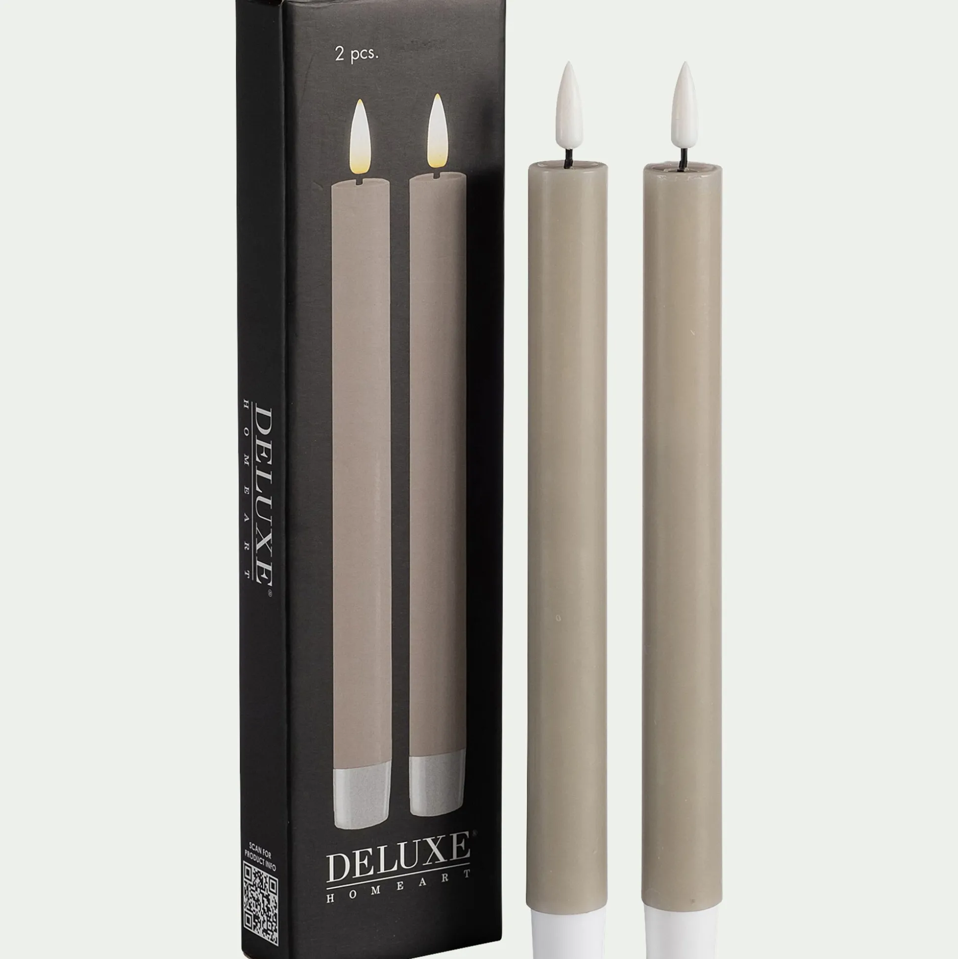 Laissez-vous séduire par ces 2 jolies chandelles à LED. Elles arborent un design élégant et classique, ainsi qu’une technologie LED moderne pour un produit durable. Fabriquée en paraffine, chacune de ces chandelles est munie d’une mèche en plexiglas, contenant une LED blanc chaud pour une lueur de charme. Elles présentent une couleur sobre, ce qui fait de ces objets la touche finale parfaite pour votre dressage de table lors de repas de fêtes ou autres occasions. Associez ces chandelles LED à piles avec les chandeliers qui conviennent afin de créer un bel élément déco pour votre table.