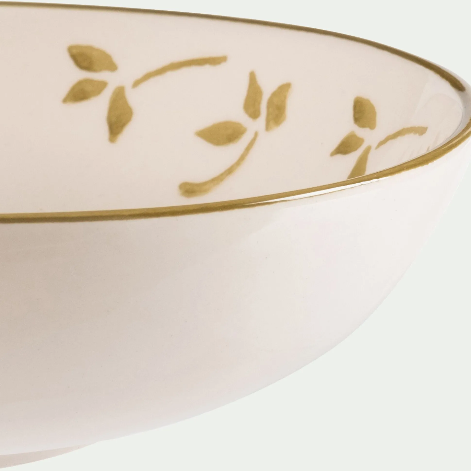 Avec son design délicat, la coupelle Melina apporte une touche de poésie à la table. Son coloris blanc éclatant met en valeur un fin liseré qui souligne son bord, tandis que de petites fleurs, légères et aériennes, semblent danser sur la faïence. Un joli jeu de contrastes qui sublime chaque dégustation, de l’entrée au dessert.