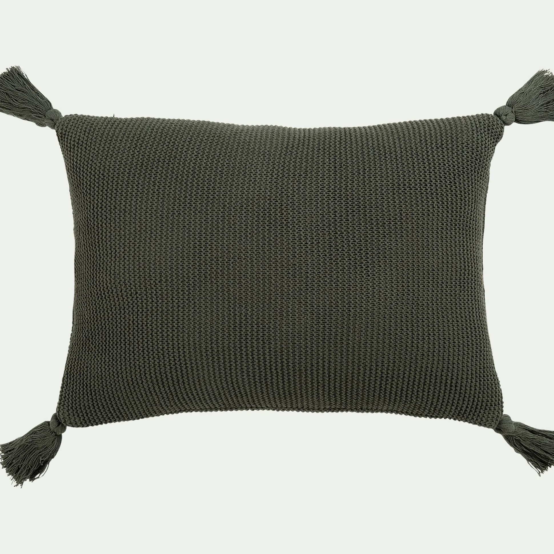 Le tricot est à nouveau au cœur des tendances et s’invite dans votre intérieur. Optez pour ce joli coussin en coton tricoté sur le canapé ou le fauteuil pour une belle touche déco. Il vous proposera un excellent confort pour vos moments de détente et vous serez séduits par ses pompons aux extrémités. Son coloris vert cèdre apportera une touche naturelle à votre salon ou votre chambre et vous pouvez créer une décoration inspirante en mixant les coussins de la même gamme.
