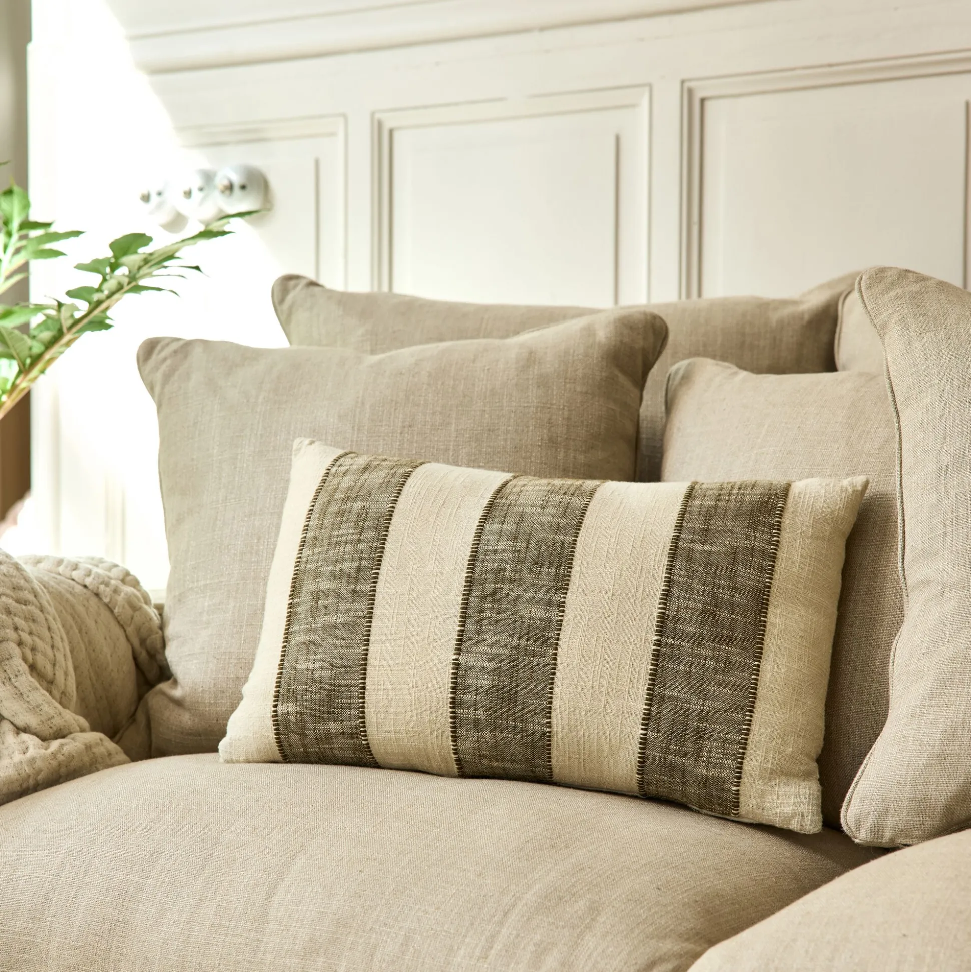 Coussin à rayures en coton 30x50cm – vert