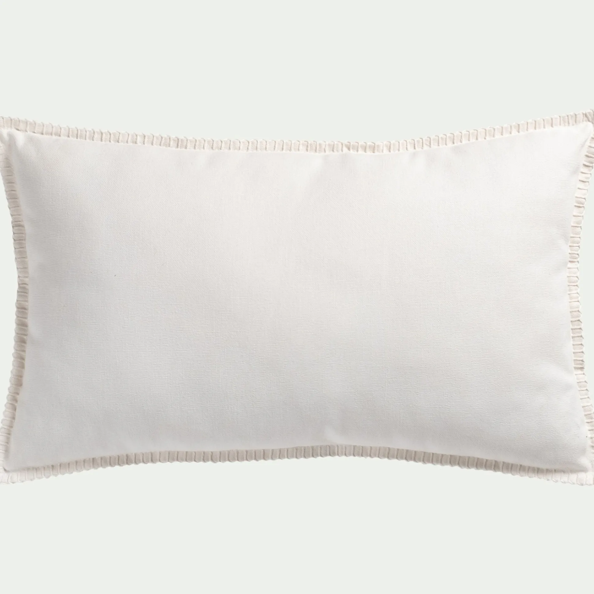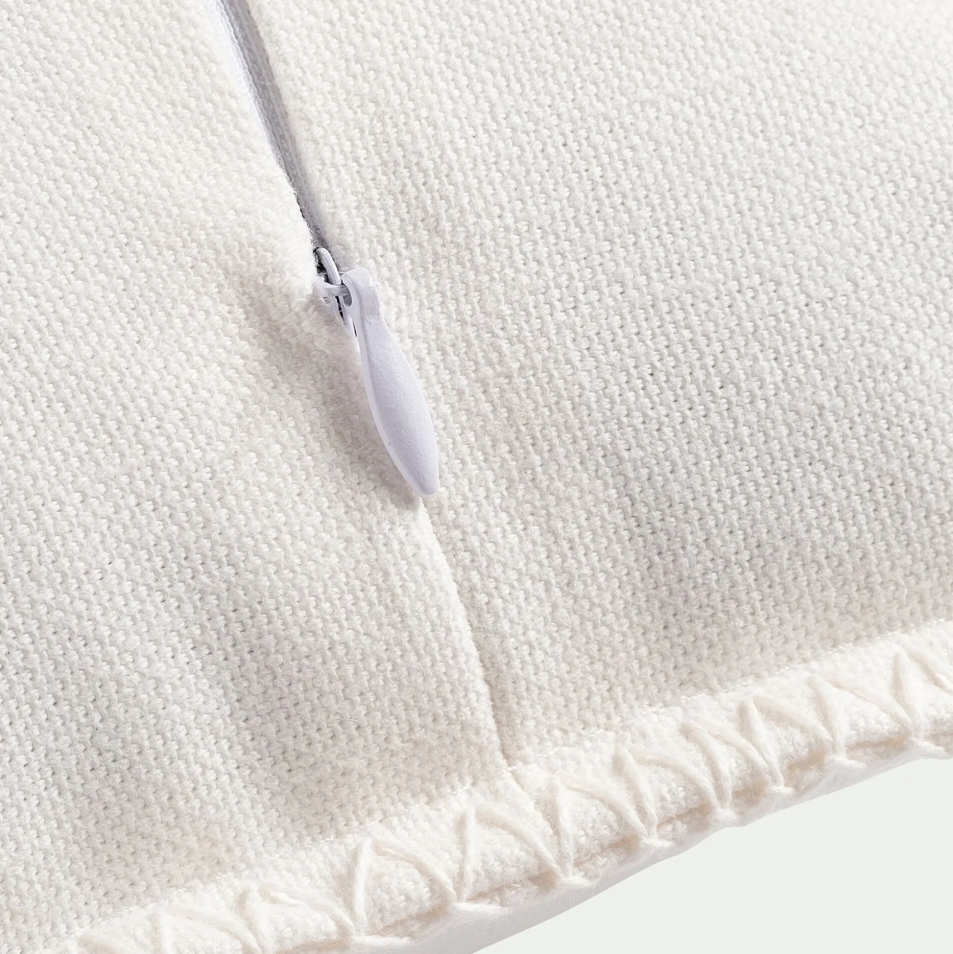 Comble de l’élégance, le coussin déco Agde apporte une touche d’éclat raffiné à votre séjour. Sa housse en coton arbore un blanc immaculé, subtilement bordée par une surpiqûre en point de cheval. Cette fine broderie apporte de la texture, mais surtout de la prestance à ce coussin blanc. De 30×50 cm, ce coussin rectangulaire trouve sa place dans le canapé comme une promesse d’un confort supérieur et d’un style épuré.