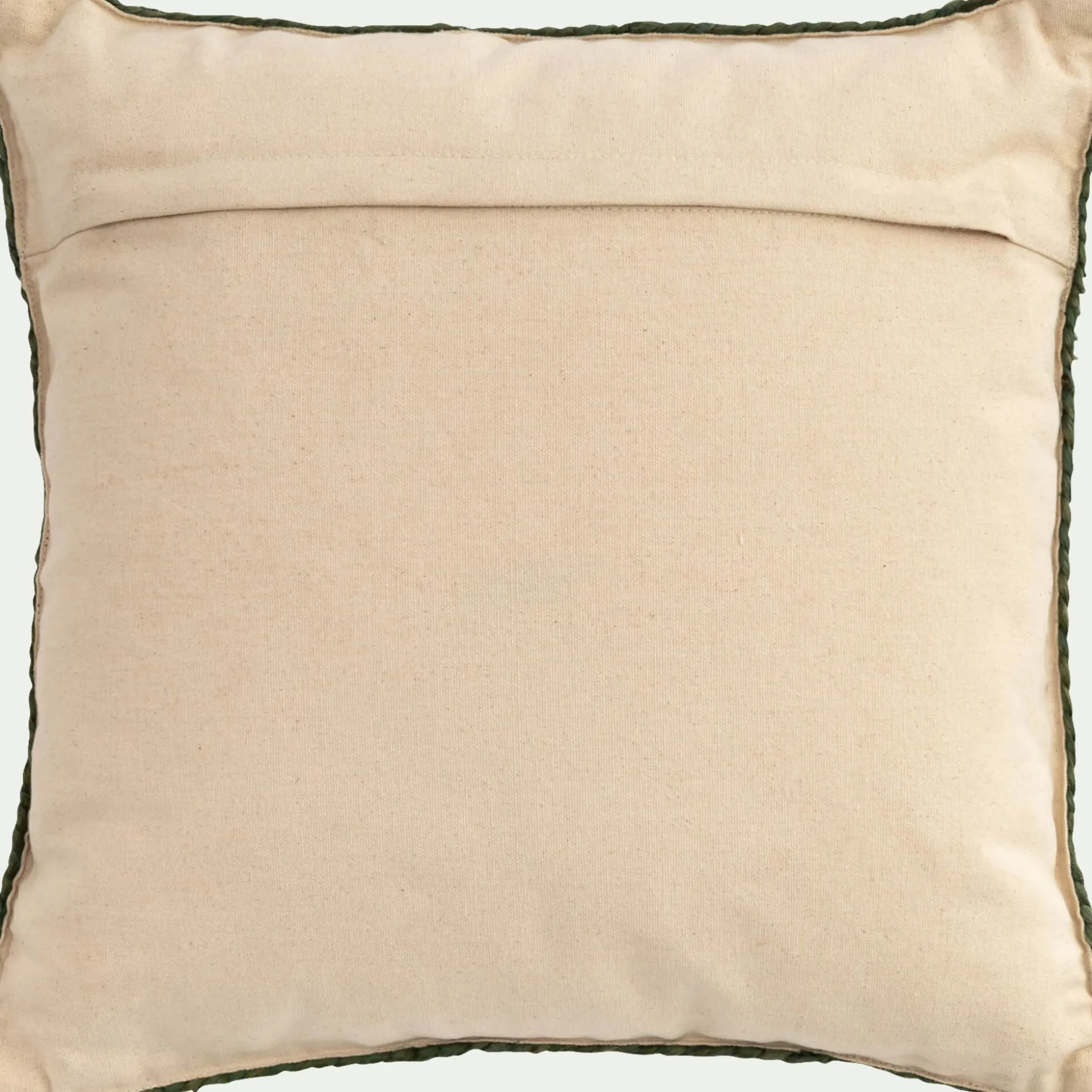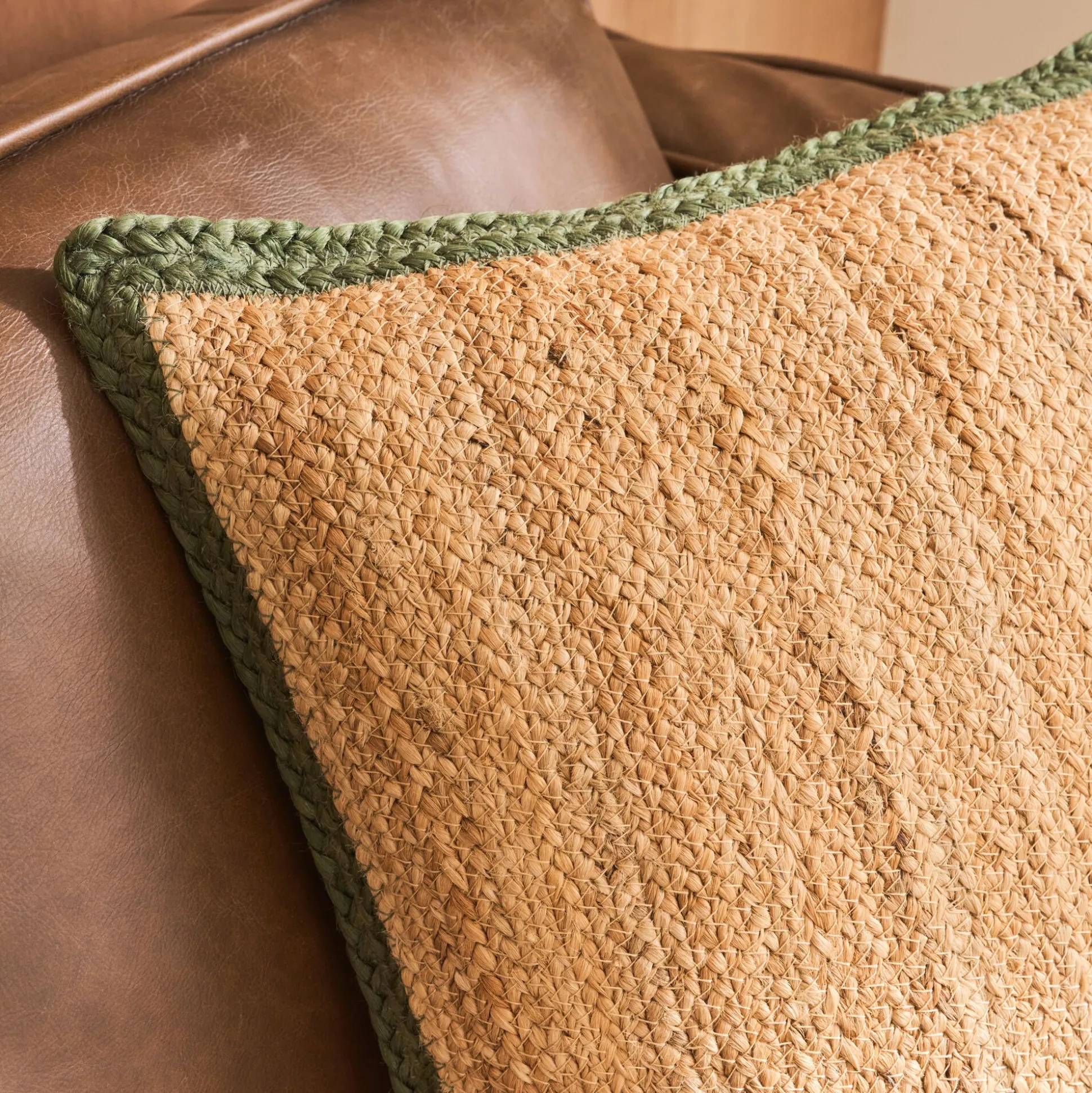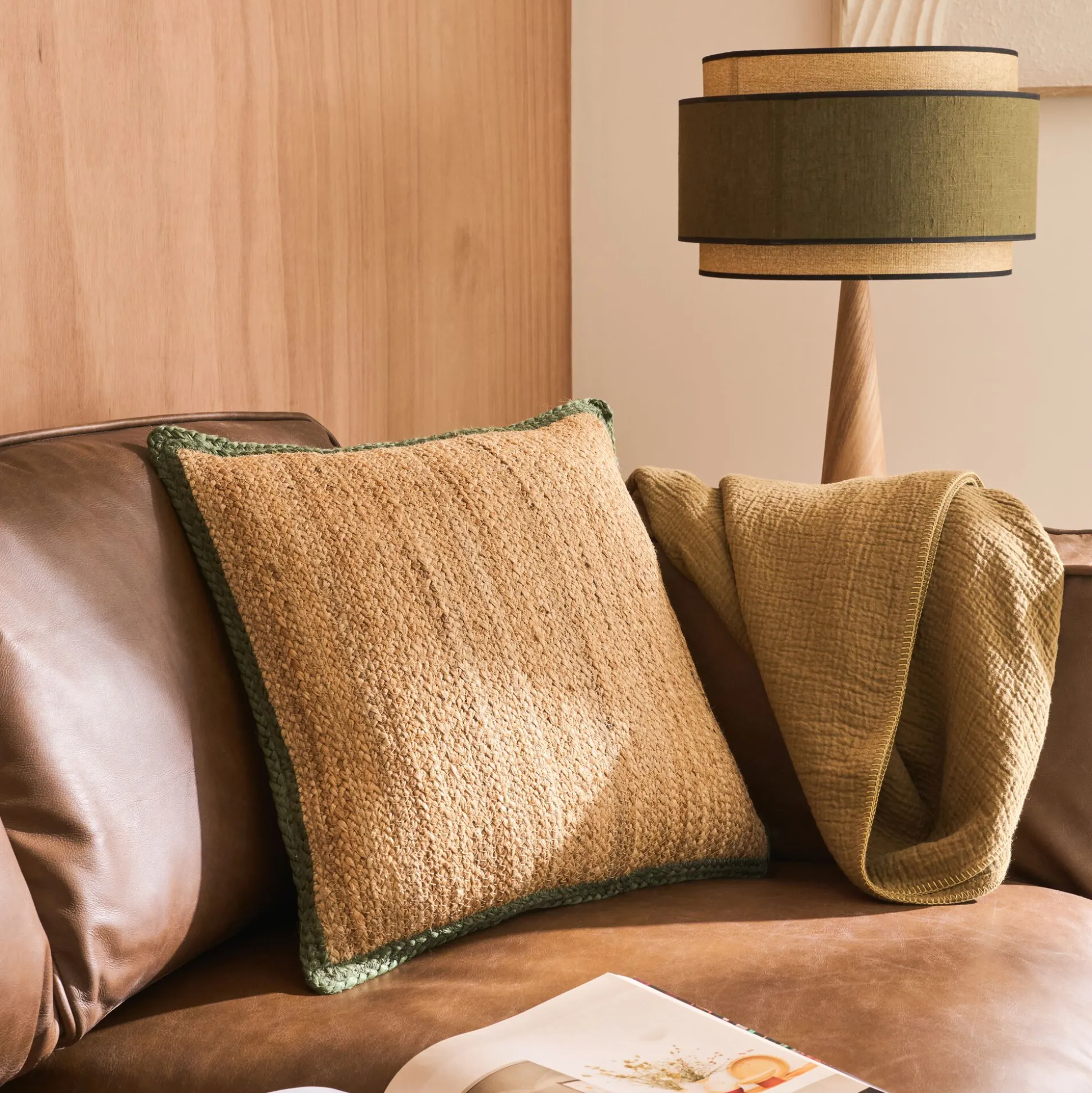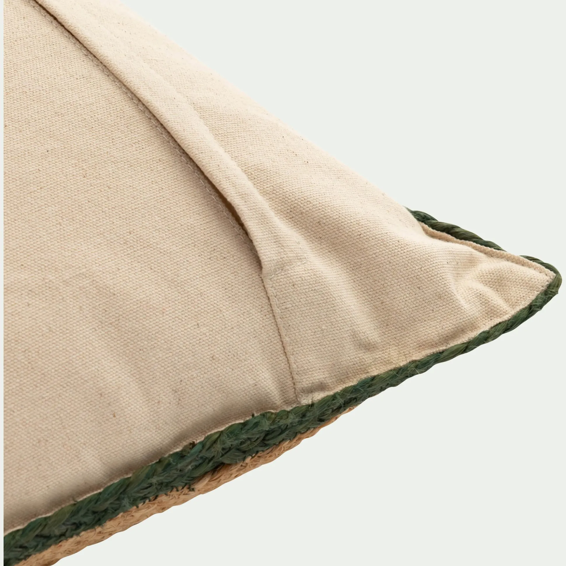 Une douce déco champêtre se dégage de votre intérieur grâce à ce coussin tressé. En coton et en jute, son enveloppe arbore un coloris naturel. Sa finition liserée verte donne un rendu élégant. En 45×45 cm, ce coussin décore votre canapé pour une décoration bohème. Déhoussable, il est tressé en jute d’un côté et en tissu en coton de l’autre.