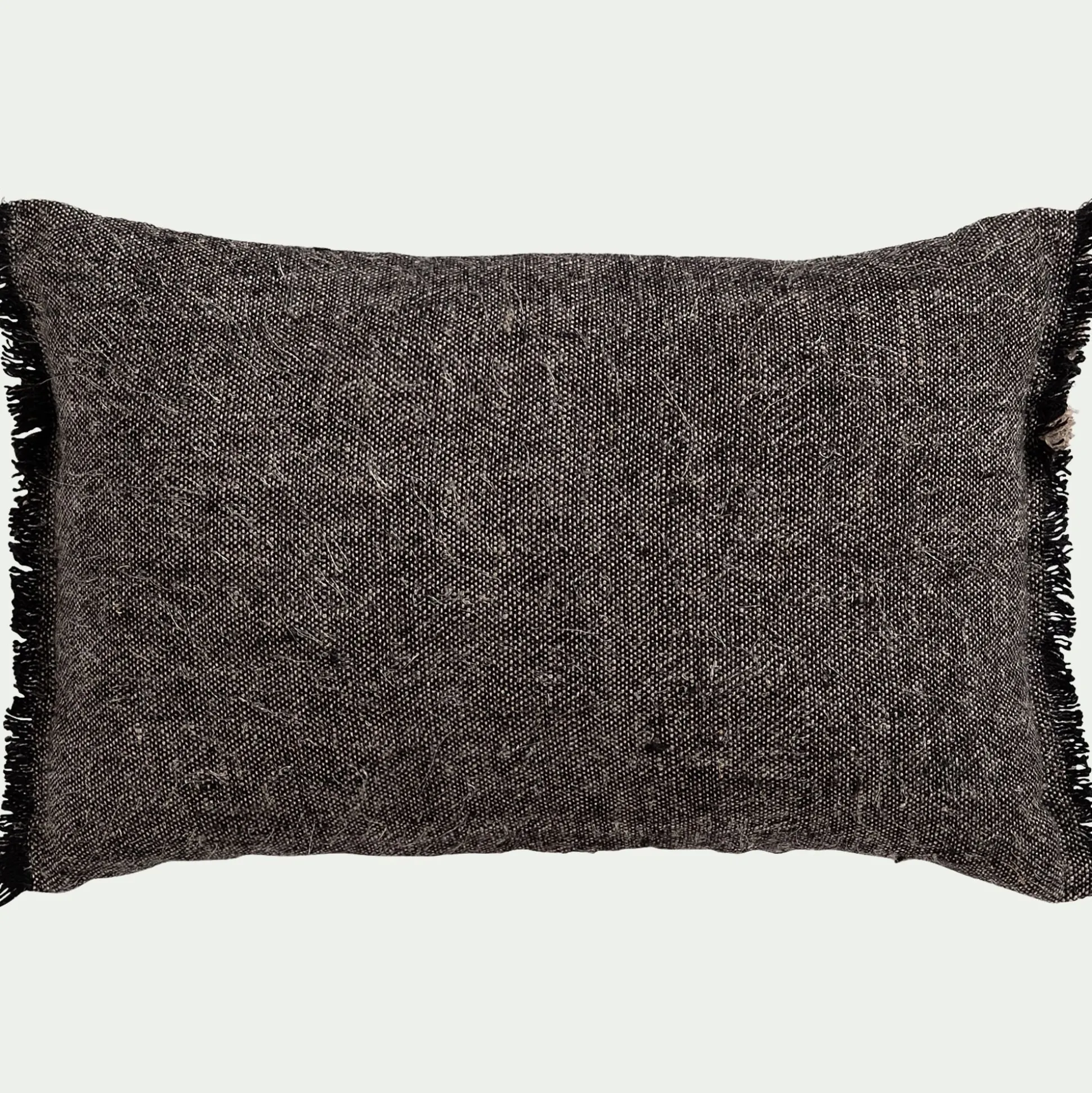 Noir et beige s’entremêlent dans un tissage en chambray soyeux. Les fils dansent ensemble et forment de gros grains sur cette étoffe épaisse. Le chambray offre une teinte faussement unie, comme vieillie, tannée par le soleil. Tissée en lin, la housse de coussin diffuse un caractère estival. Son toucher délicat rappelle les beaux jours et invite au repos. Sa finition passepoil présente de courtes franges, détail fantaisiste et aérien adoucissant ce coussin noir. Déhoussable, son garnissage en polyester s’ôte facilement pour procéder au lavage en machine de la housse. Un coussin déco inspiré de la palette sombre et sablée des paysages égyptiens.
