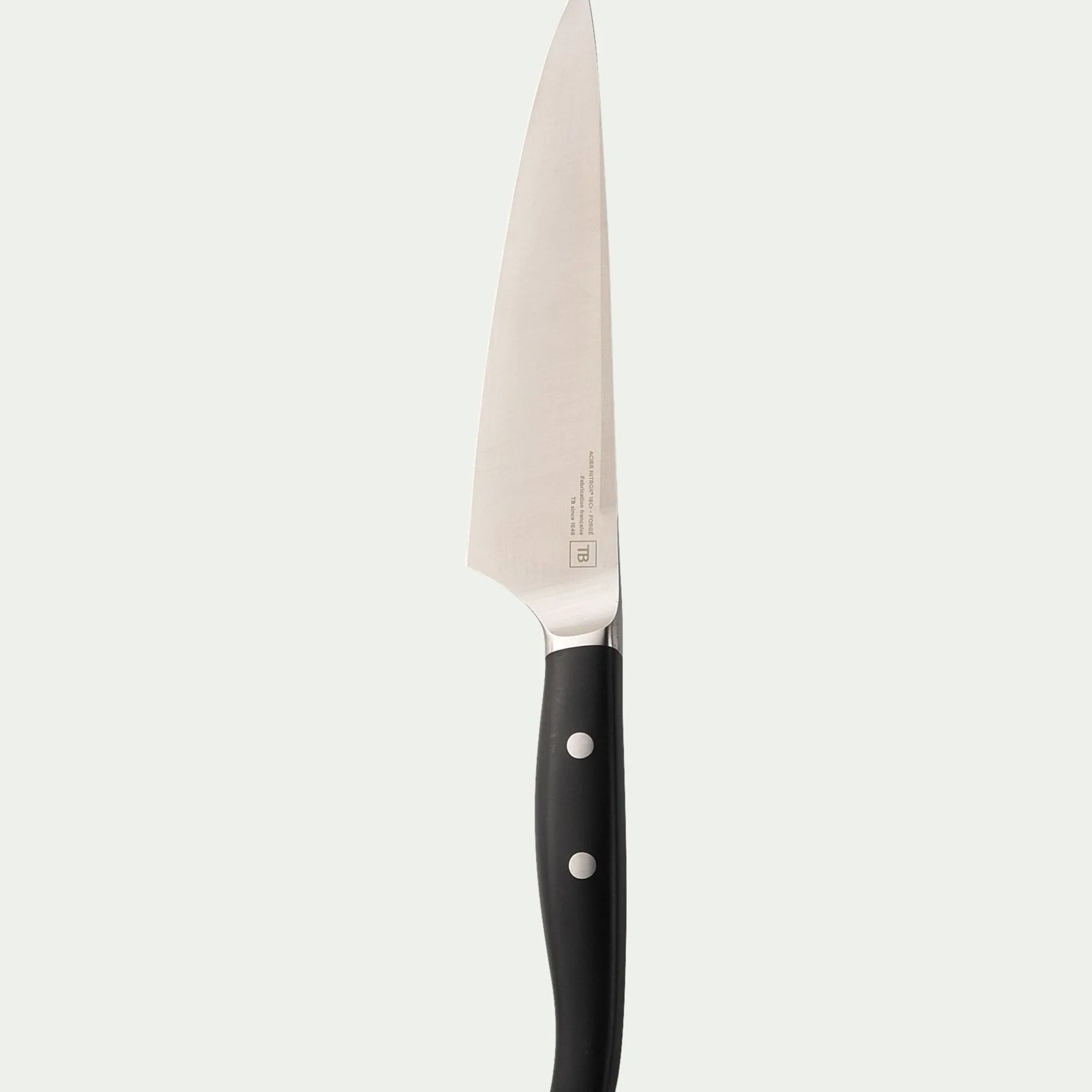 Avec ce couteau de cuisine, devenez un véritable chef à la maison et épater vos proches avec la précision de votre découpe. Doté d’une lame de 15 cm, il s’agit d’un couteau multi-usage qui vous permettra de découper différents aliments afin de réaliser toutes vos recettes. Sa lame en acier Nitrox contient du chrome et du carbone afin de renforcer sa dureté et ses propriétés anti-corrosion pour éviter qu’il ne s’abîme au fur et à mesure des utilisations. Son manche, solide et léger, est en thermo-plastique, une matière hygiénique et très résistante aux chocs et aux changements de température.