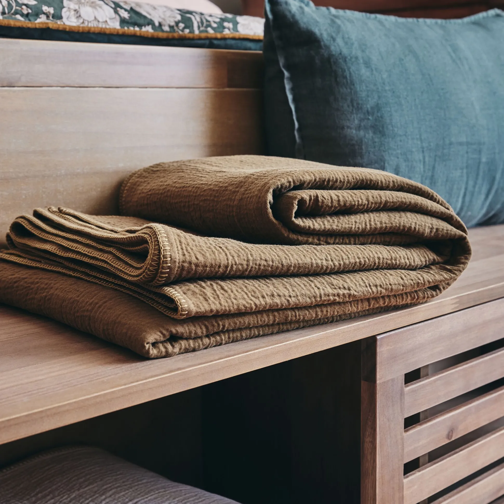 Le couvre-lit Kali est un choix distingué pour réhausser votre chambre tout en protégeant votre linge de lit. On l’oublie parfois, mais la première fonction du couvre-lit est avant tout de préserver la propreté des draps. Dans son coloris vert, ce grand couvre-lit de 230×250 cm est une belle pièce déco pour votre chambre à coucher. Confectionné en triple gaze de coton, il garantit aussi une douceur exceptionnelle pour des moments chaleureux. La finition en point de cheval, discrètement contrastée, ajoute une touche de sophistication à l’ensemble. Parcourez notre gamme complète pour en découvrir davantage.