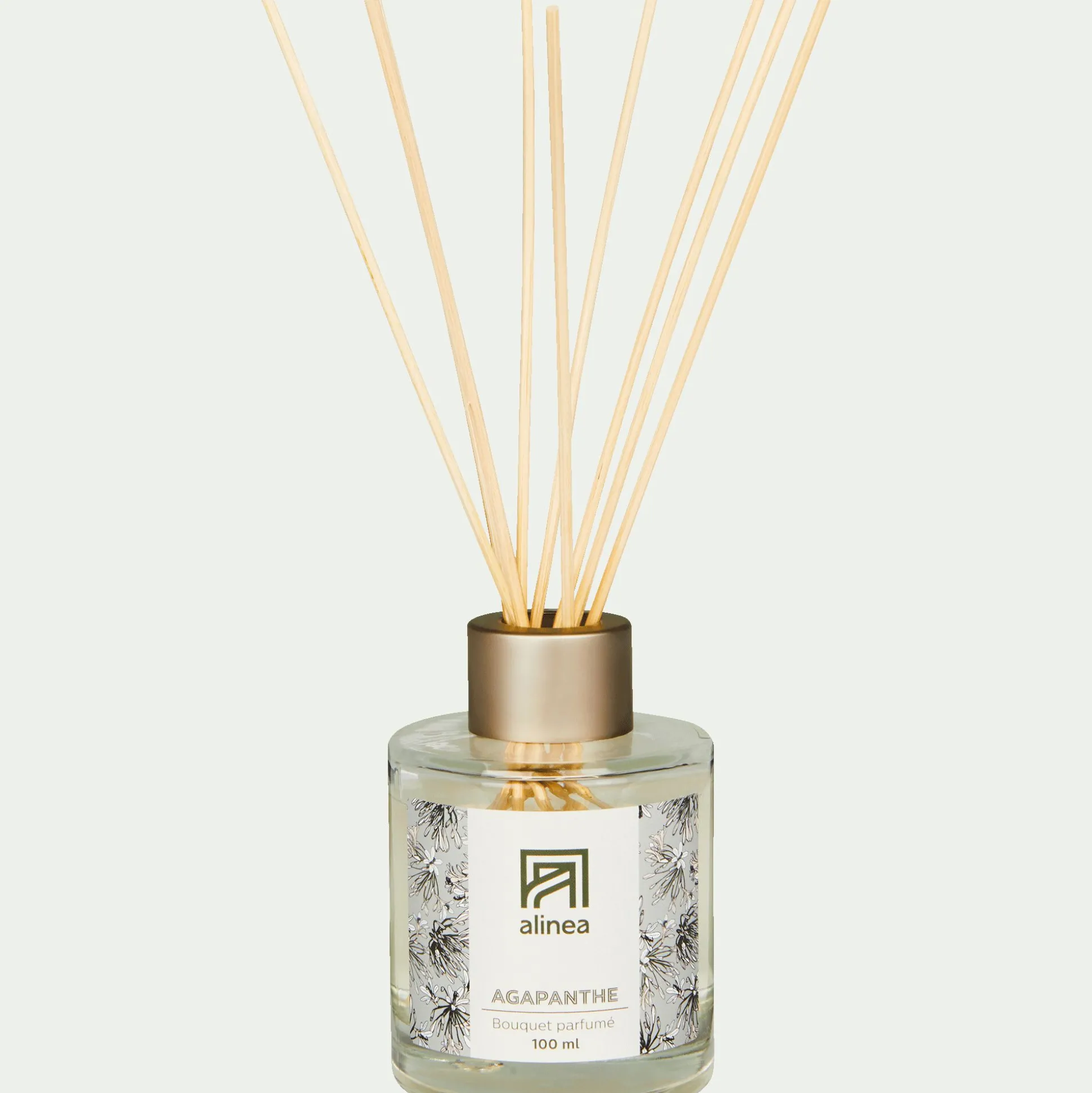 Nous vous proposons la fragrance Agapanthe pour ses notes boisées, salées, verdies. Une partie de cache-cache dans les massifs d’un jardin blanc et l’eau qui s’écoule des tiges cassées. Une escapade dans les sentiers de Corfou. La fraîcheur végétale du « lys du Nil » qui résiste au soleil surpuissant… Les bâtonnets en rotin de ce bouquet parfumé permettent une diffusion en continu et en toute sécurité. A chaque renouvellement, choisissez le parfum de votre choix.
