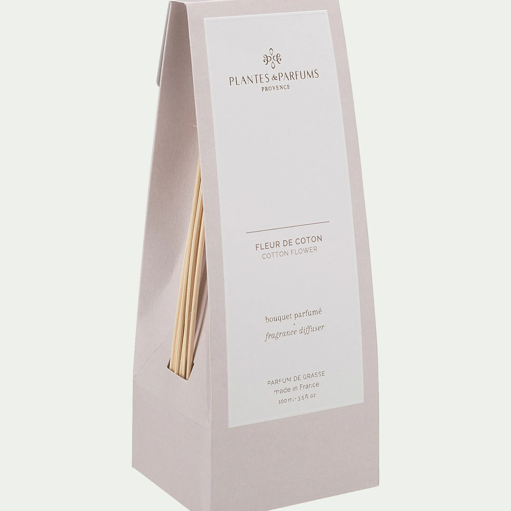 Avec le bouquet parfumé Fleur de Coton, diffusez chez vous un parfum frais, poudré et envoûtant. Véritable ode à la délicatesse, les effluves subtilement floraux de ce parfum vous accompagneront plusieurs semaines. Les notes de tête de framboise et d’accord vert épousent les notes de cœur faites de pivoine, fleur de coton, violette et fraise des bois pour un parfum sucré. Ce voyage olfactif se termine par des arômes d’héliotrope, cèdre et musc blanc, pour un bouquet au parfum élégant et singulier.