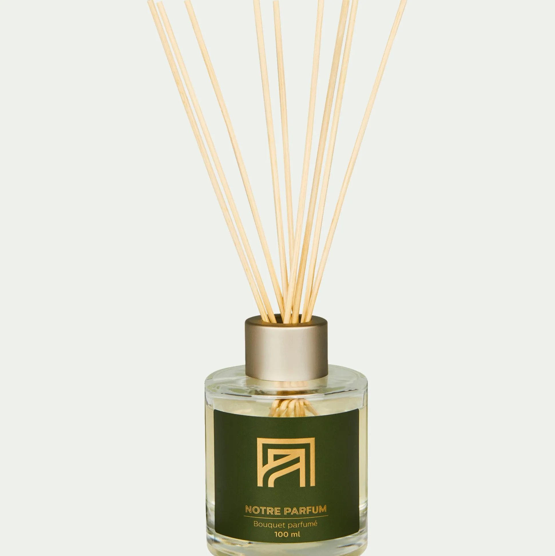 Pur, frais, boisé et fleuri, Notre Parfum porte en lui l’essence de la marque : l’agrume d’une bergamote comme fruit du soleil, l’été bruni des aiguilles de pin, les essences enivrantes des cascades de chèvrefeuille et de jasmin. Il est cet équilibre d’un sud apaisé, à la fois vivant et racé. Les bâtonnets en rotin de ce bouquet parfumé permettent une diffusion en continu et en toute sécurité. A chaque renouvellement, choisissez le parfum de votre choix. Laissez-vous séduire par le diffuseur aux notes méditerranéennes Notre Parfum.