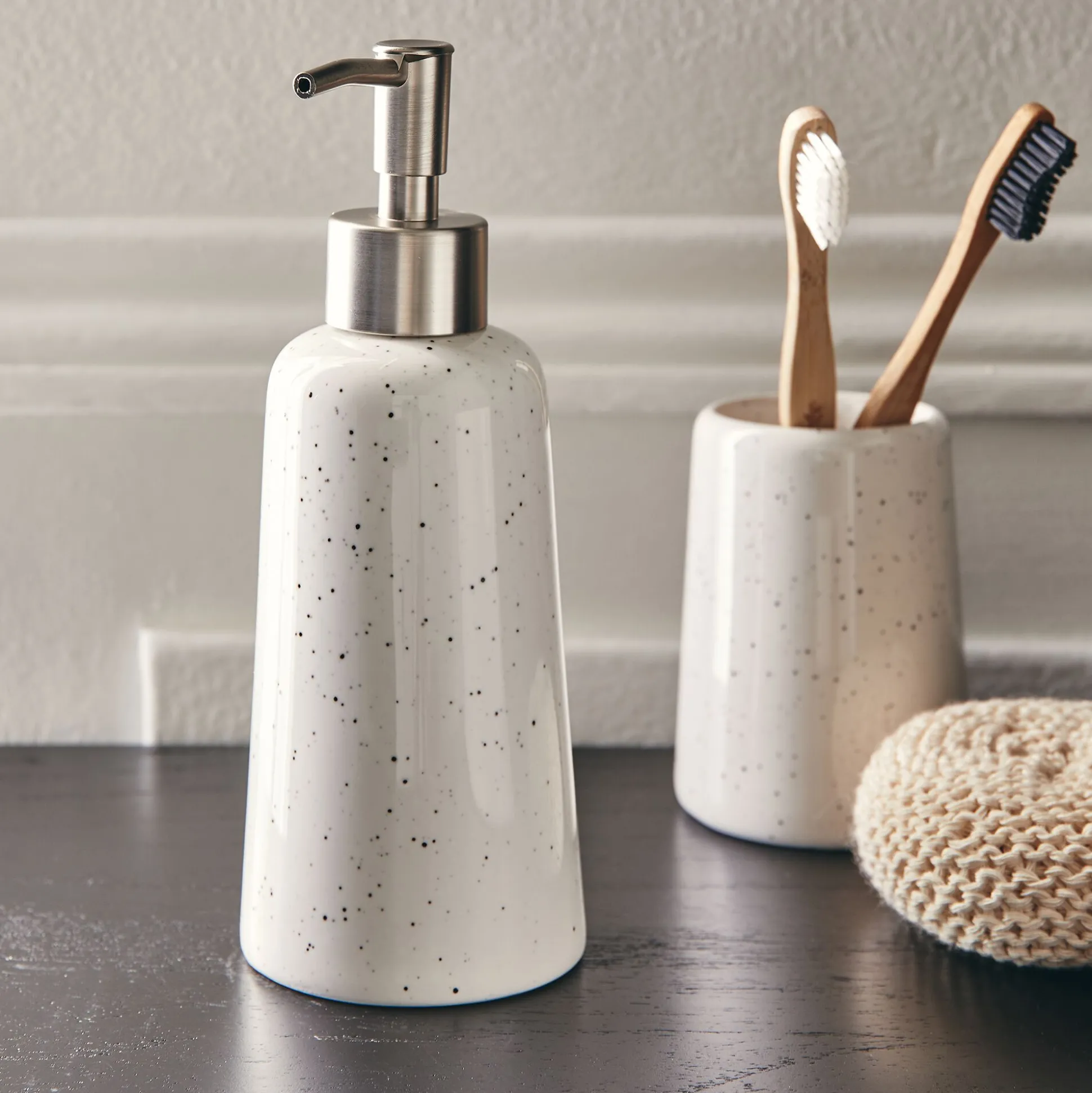 Ce distributeur de savon blanc est un intemporel à avoir dans sa salle de bain. Dévissez le bouton-poussoir et approvisionnez la bouteille du savon liquide de votre choix. Il suffit ensuite d’une simple pression sur le pressoir argenté pour obtenir une dose de savon et se laver les mains. Fabriqué au Portugal, ce distributeur de savon en céramique peut se détourner avec de la crème ou encore du démaquillant. Toujours utile et pratique, il habille l’espace autour du lavabo et apporte la touche finale à votre décoration de salle de bain.