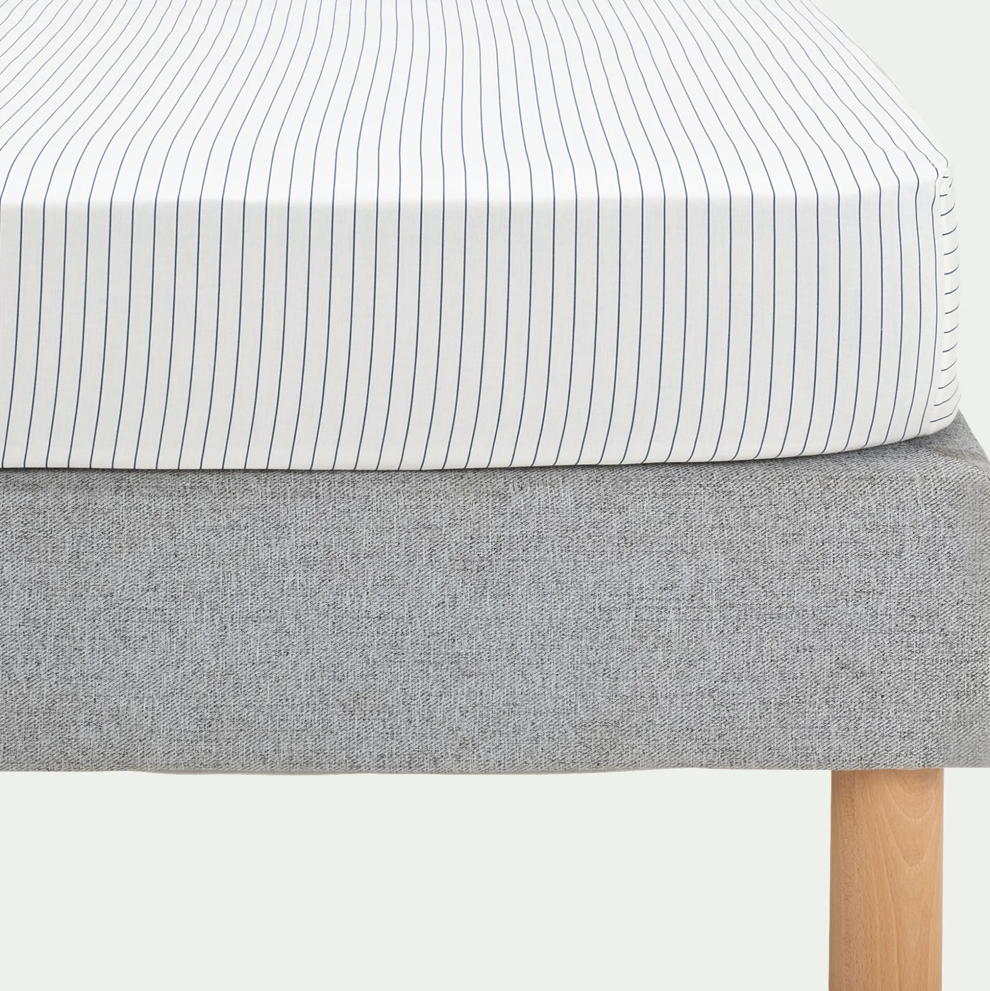 Idéal pour un lit simple, ce drap housse de 90×200 cm se distingue par ses rayures bleues, subtiles et élégantes. Parfaitement ajusté avec son bonnet de 30 cm, il reste bien en place même sur les matelas plus hauts. En coton certifié Oeko-Tex, ce drap housse à rayures garantit des nuits confortables et un sommeil apaisé.
