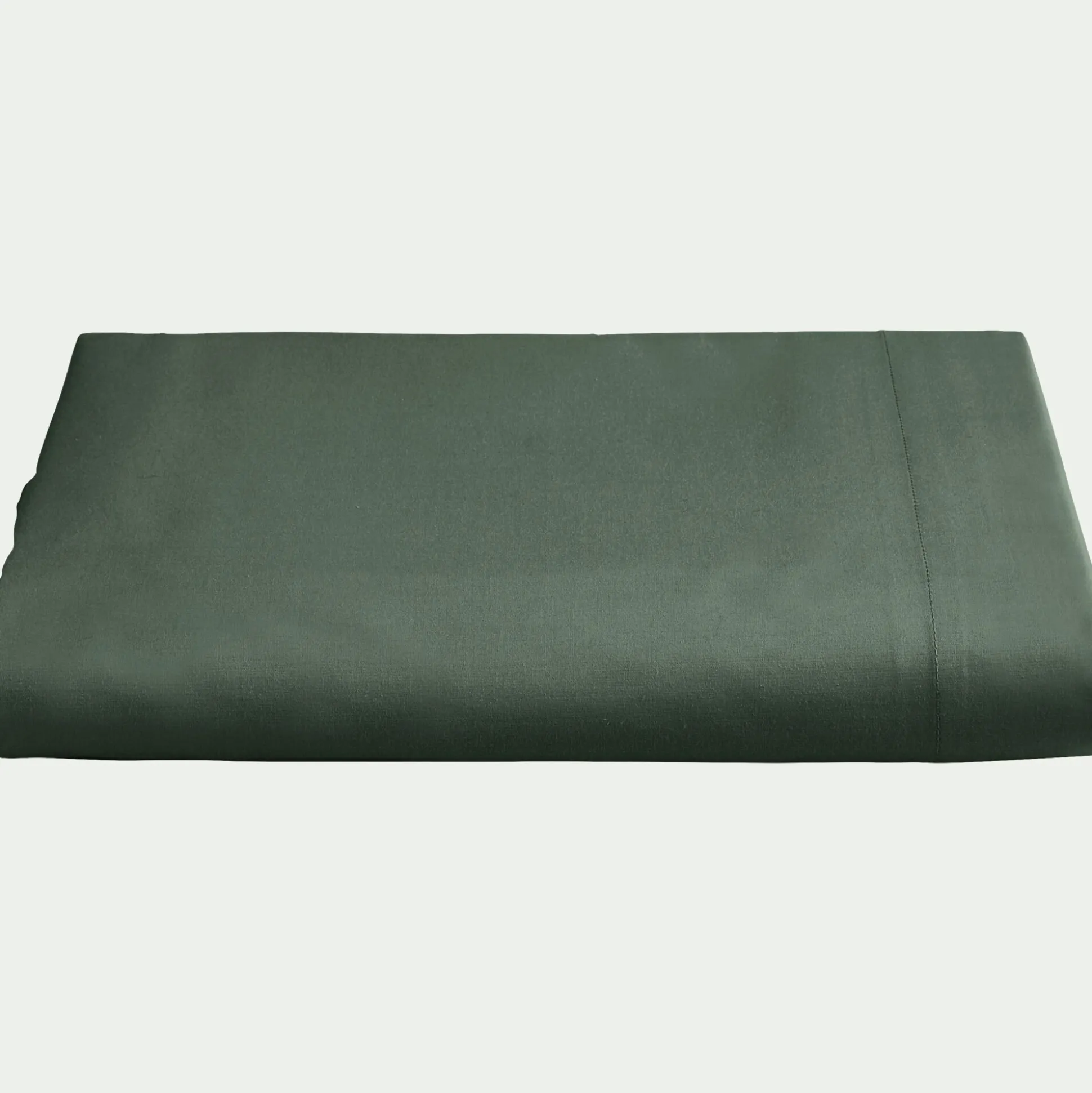 Le drap plat 270x300cm de la gamme Flore est en percale de coton, une étoffe de très grande qualité caractérisée par un tissage très dense. Les fils sont tissés à 80 fils/cm². C’est un tissu très épais et résistant qui rappelle les draps de coton de nos grand-mères. L’ensemble de cette gamme se décline en six couleurs inspirées du bassin méditerranéen, choisies pour pouvoir s’harmoniser entre elles. Il est ainsi possible de préférer un lit uni ou composé d’une association de teintes.