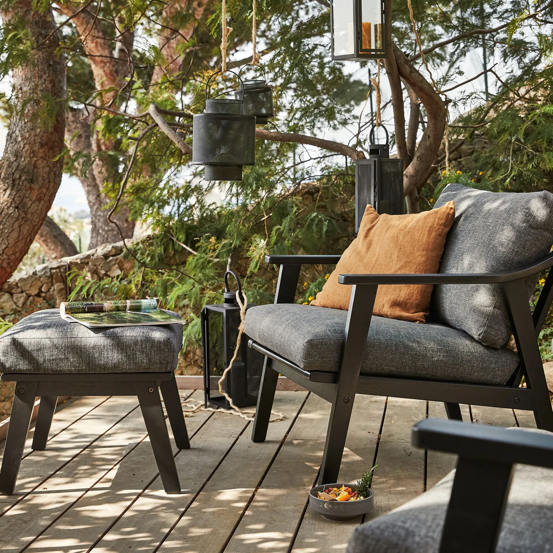 Fauteuil de jardin et repose-pieds en bois d’eucalyptus – noir