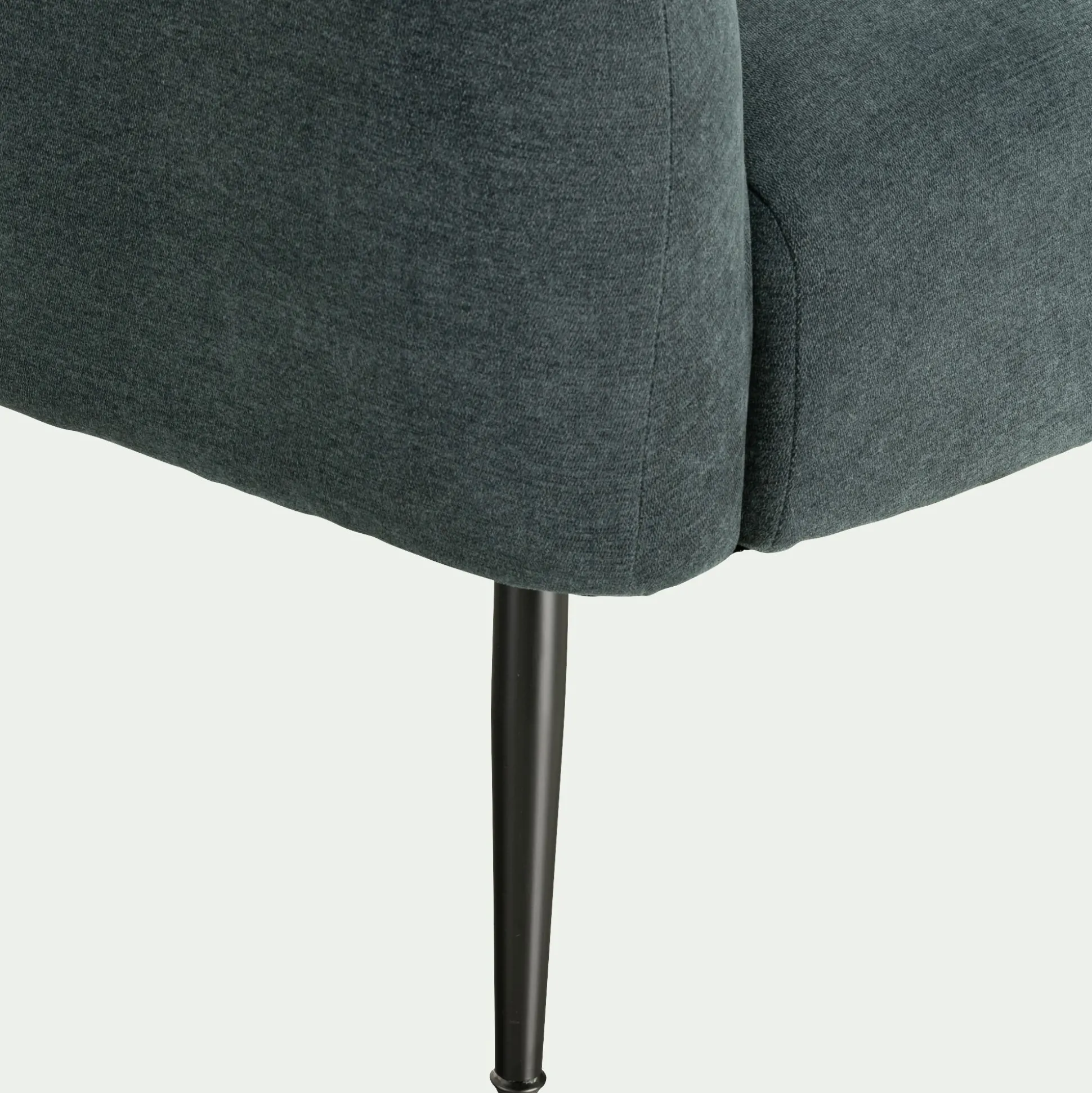 Ce fauteuil avec accoudoirs tout en rondeur est une véritable invitation à la détente. Moelleuse, l’assise de ce siège est généreuse et ses lignes arrondies lui donnent un look à la pointe de la tendance. Son revêtement de couleur bleu viendra ajouter une note colorée à votre pièce de vie et vous pourrez aisément l’accorder avec le reste de votre mobilier et quel que soit le style de votre déco.