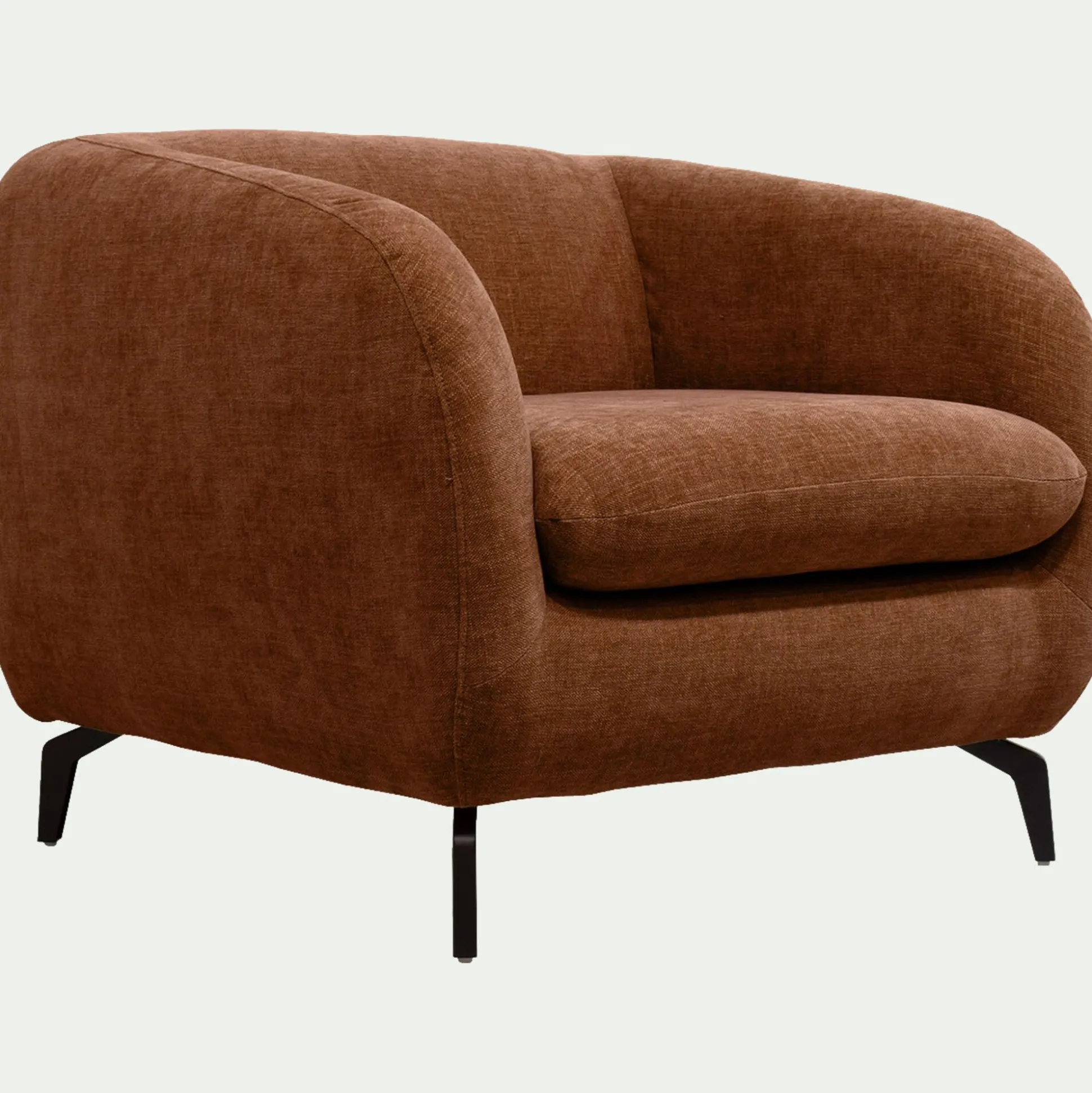 Un joli fauteuil en tissu doux pour profiter agréablement de votre salon. Un look contemporain et accueillant, sublimé par un piétement original en acier noir. Vous apprécierez la forme du dossier et des accoudoirs qui vous offrent un maintien optimal de votre dos pour un confort d’assise exceptionnel. Un fauteuil fabriqué en France, dans des ateliers proches de la ville de Bourge, qui incarne l’excellence du savoir-faire français. Un coloris brun rustrel qui apporte une note citadine et raffinée à votre déco de salon.