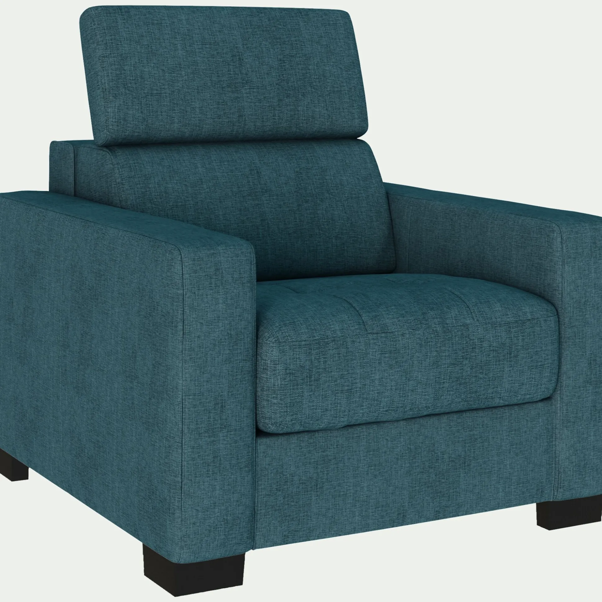 Alliant confort et élégance, ce fauteuil invite au repos avec son assise accueillante. Sa têtière réglable et ses larges accoudoirs assurent un soutien parfait, idéal pour savourer un moment de détente. Son revêtement en tissu bleu niolon s’inspire des belles calanques du Sud de la France. Porté par une structure et un piètement en bois massif certifié FSC, ce fauteuil en tissu séduit par son allure avenante et sa fabrication italienne. Un fauteuil à l’élégance naturelle, pensé pour conjuguer bien-être et style.