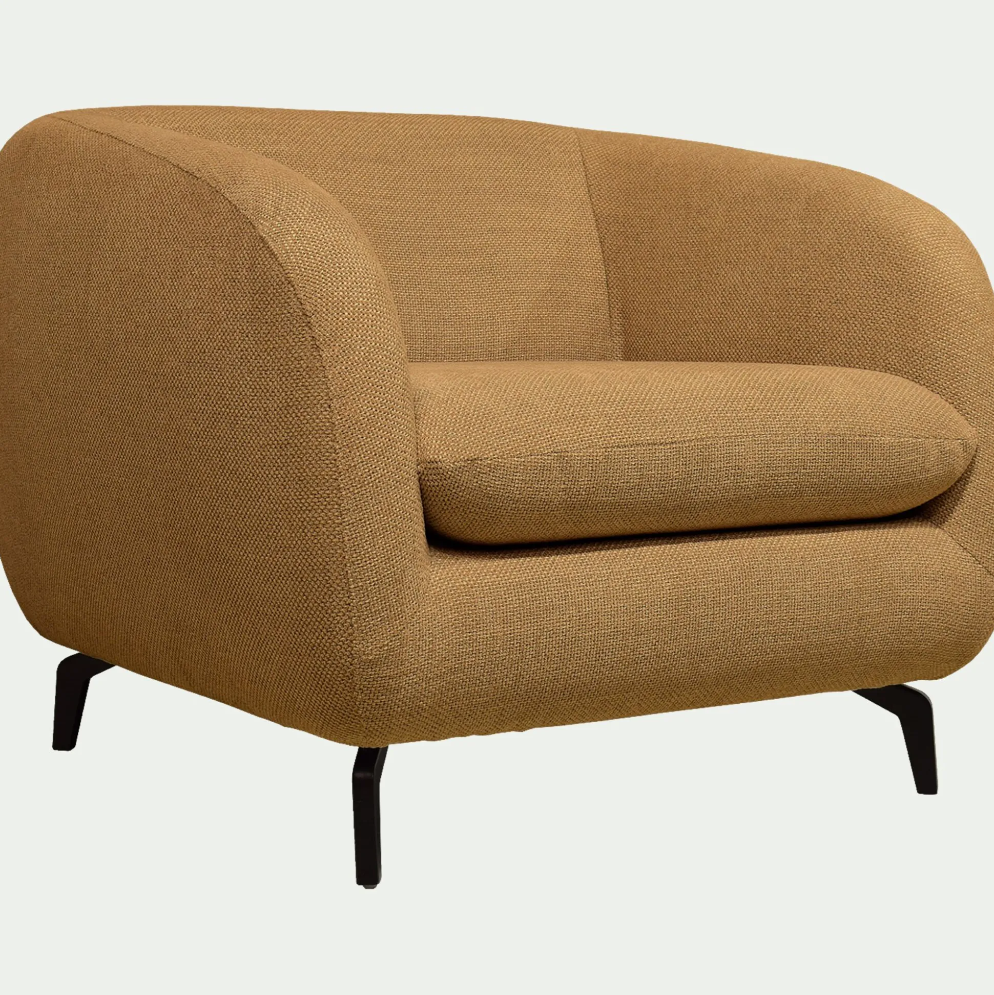 Un joli fauteuil en tissu pour profiter agréablement de votre salon. Un look contemporain et accueillant, sublimé par un piétement original en acier noir. Vous apprécierez la forme du dossier et des accoudoirs qui vous offrent un maintien optimal de votre dos pour un confort d’assise exceptionnel. Un fauteuil fabriqué en France, dans des ateliers proches de la ville de Bourge, qui incarne l’excellence du savoir-faire français. Un coloris bronze inspiré des ruelles du vieux Marseille qui apporte une note lumineuse à votre décoration de salon.