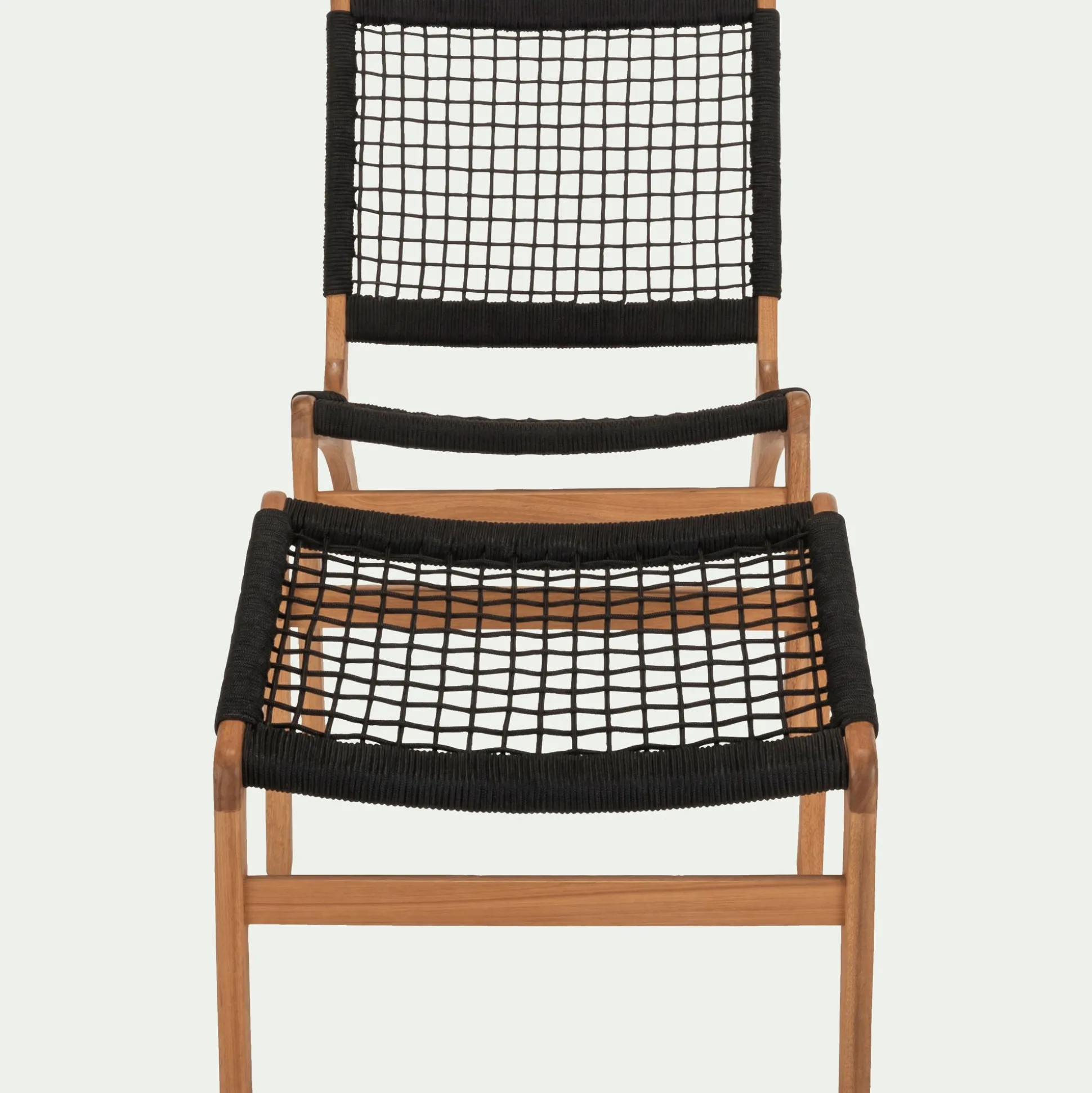 En extérieur à l’ombre d’un parasol pour profiter d’un moment de détente et de la douceur du printemps ou à l’intérieur dans une véranda. Ce fauteuil et son repose-pied proposent une assise et un maintien confortable. Le dessin de sa structure et le maillage de ses cordes font de ce mobilier une véritable pièce décorative au style singulier et naturel. Ce meuble de jardin trouvera aisément sa place chez vous.