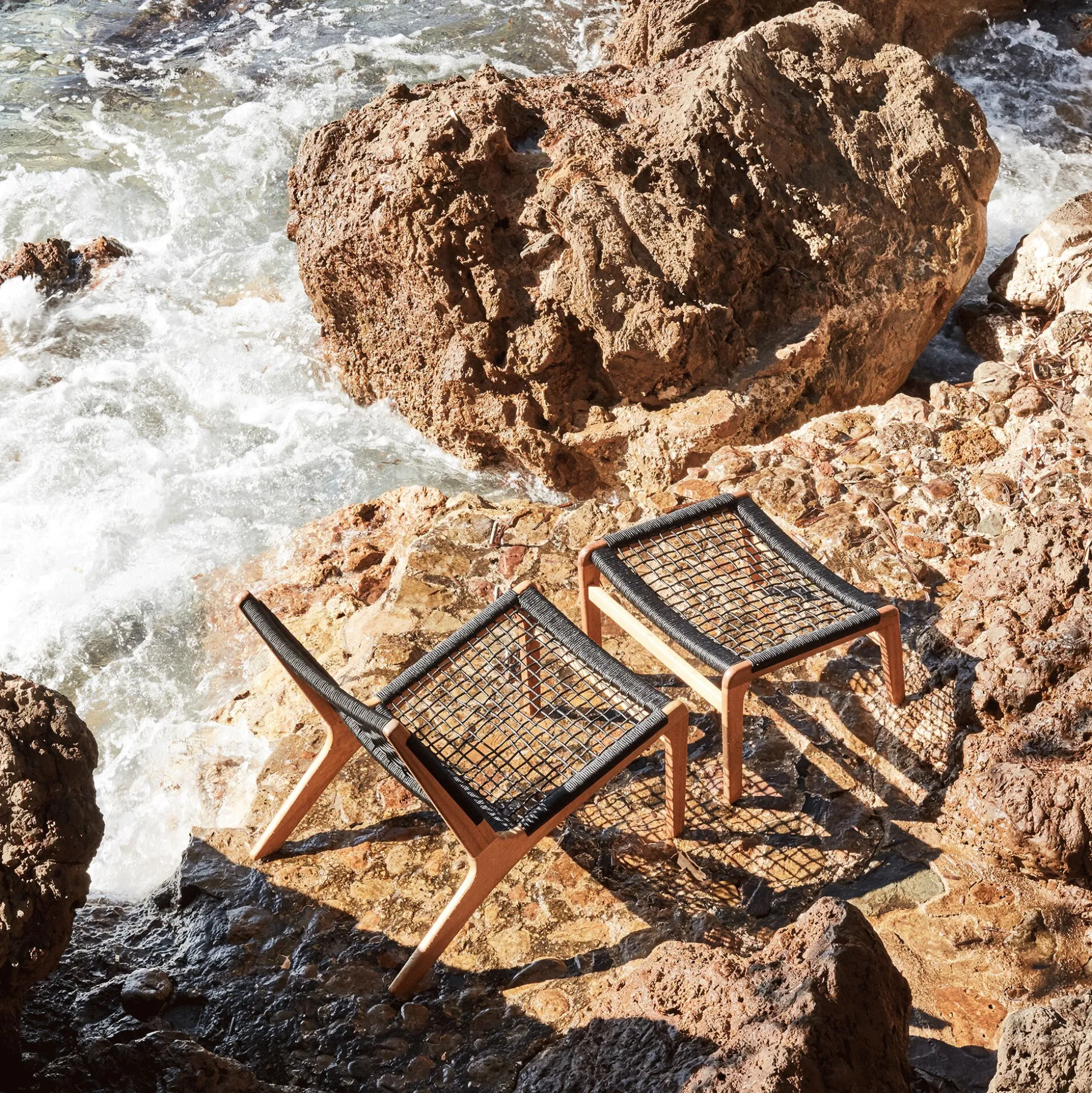 Eucalyptus FSC finition huilée et corde synthétique polyester.