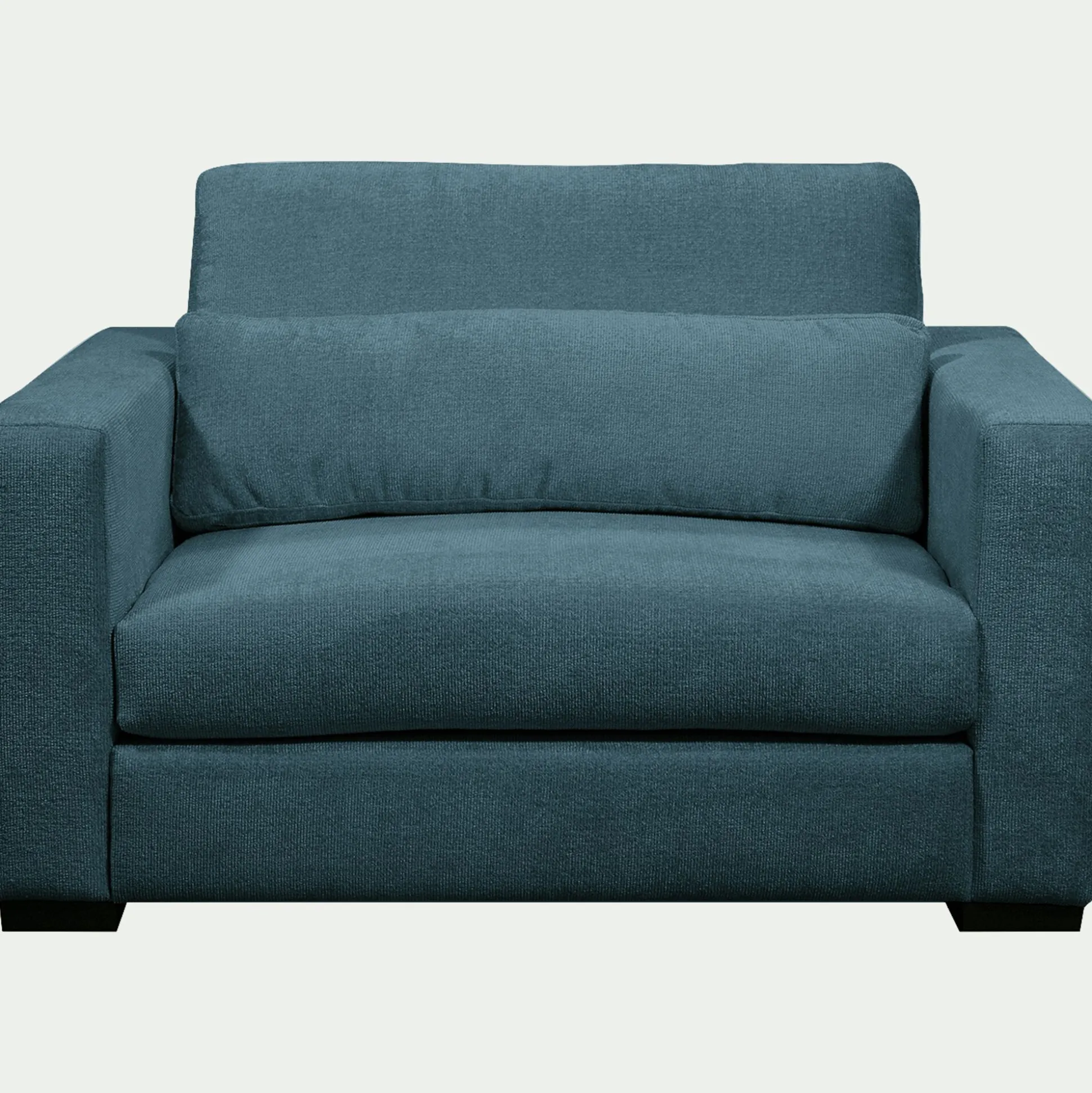Avec son tissu bleu et son design de caractère, ce fauteuil 1,5 places insuffle une atmosphère réconfortante et sophistiquée au salon. Son assise généreuse promet un confort parfait, renforcé par des coussins et de larges accoudoirs. Conçu en Ukraine, il bénéficie d’une structure et de pieds en bois massif, alliant solidité et durabilité. La texture douce du tissu lui confère un toucher agréable et un style intemporel. Véritable nid douillet, ce fauteuil en tissu invite à la relaxation. Son coloris bleu participe à une décoration à la fois apaisante et joyeuse.