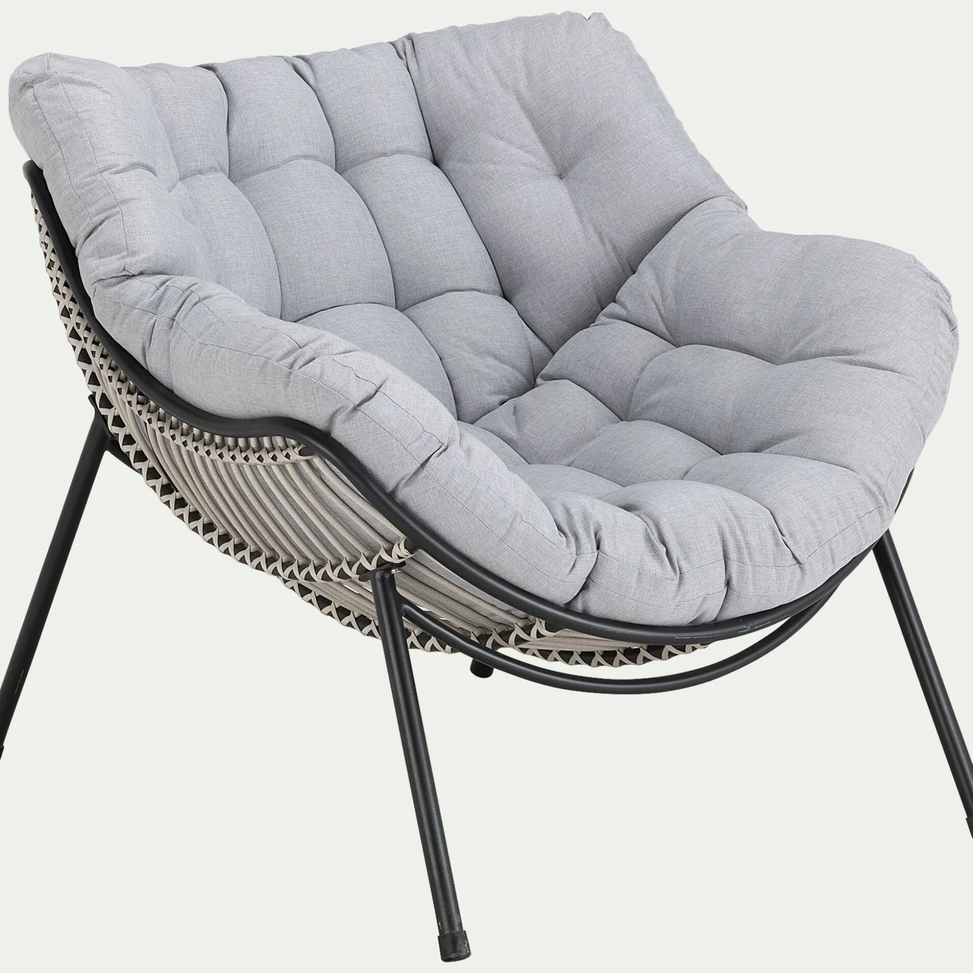 Coup de coeur pour ce fauteuil relax qui vous invite à la détente, voire à la paresse. Vous vous sentirez comme sur un nuage, lové dans ses coussins matelassés ultra moelleux au doux coloris gris. Sa forme enveloppante est rassurante et particulièrement confortable. Vous vous laisserez aller avec sérénité à des sensations réconfortantes et empreintes de douceur. Il peut venir compléter l’aménagement de votre jardin ou votre salon.