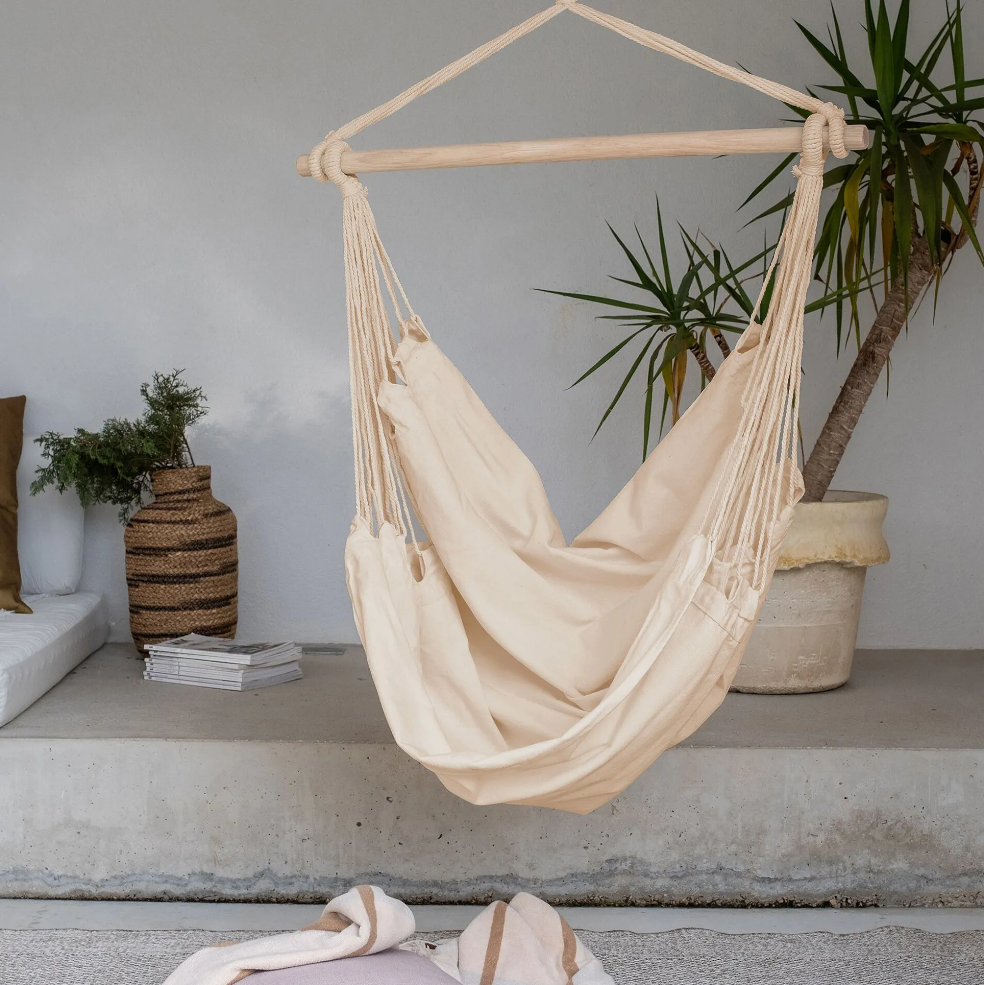Fauteuil suspendu en polycoton – beige roucas