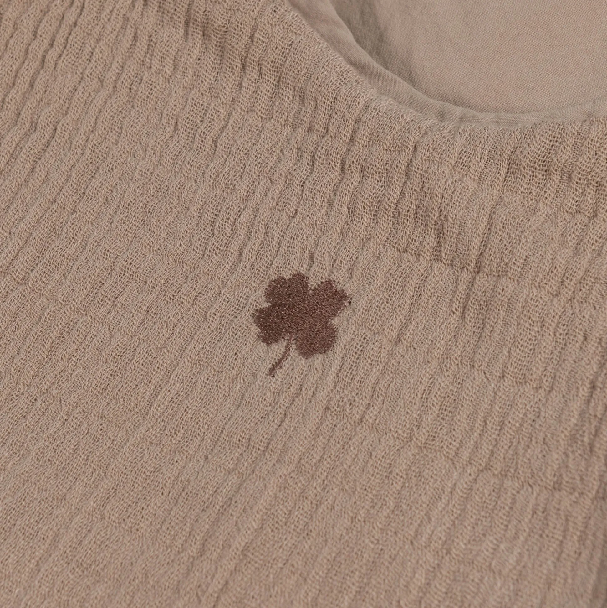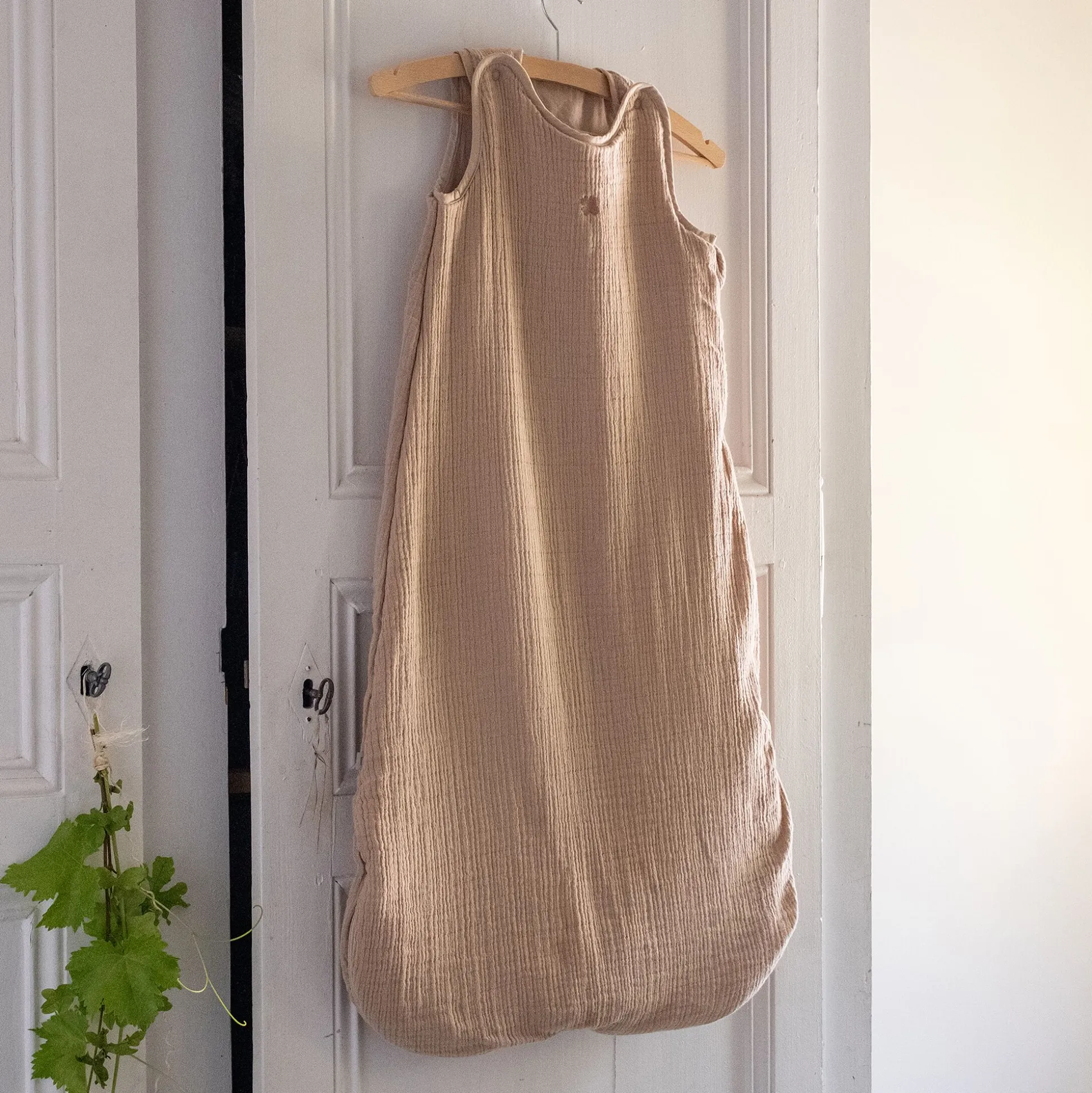 Cette gigoteuse pour bébé, d’un doux coloris marron noisette neutre, allie confort et praticité. Confectionnée au Portugal, elle associe une gaze de coton bio légère en surface à un intérieur en coton bio, pour une douceur optimale et une chaleur assurée grâce à un garnissage polyester de 80 g/m². Sa fermeture zippée facilite l’habillage tandis que les boutons-pression aux épaules et au bas permettent d’adapter la longueur pour accompagner la croissance de bébé. Les finitions soignées, avec une délicate broderie et un biais uni, ajoutent une touche élégante et épurée à ce cocon sécurisant et naturel.