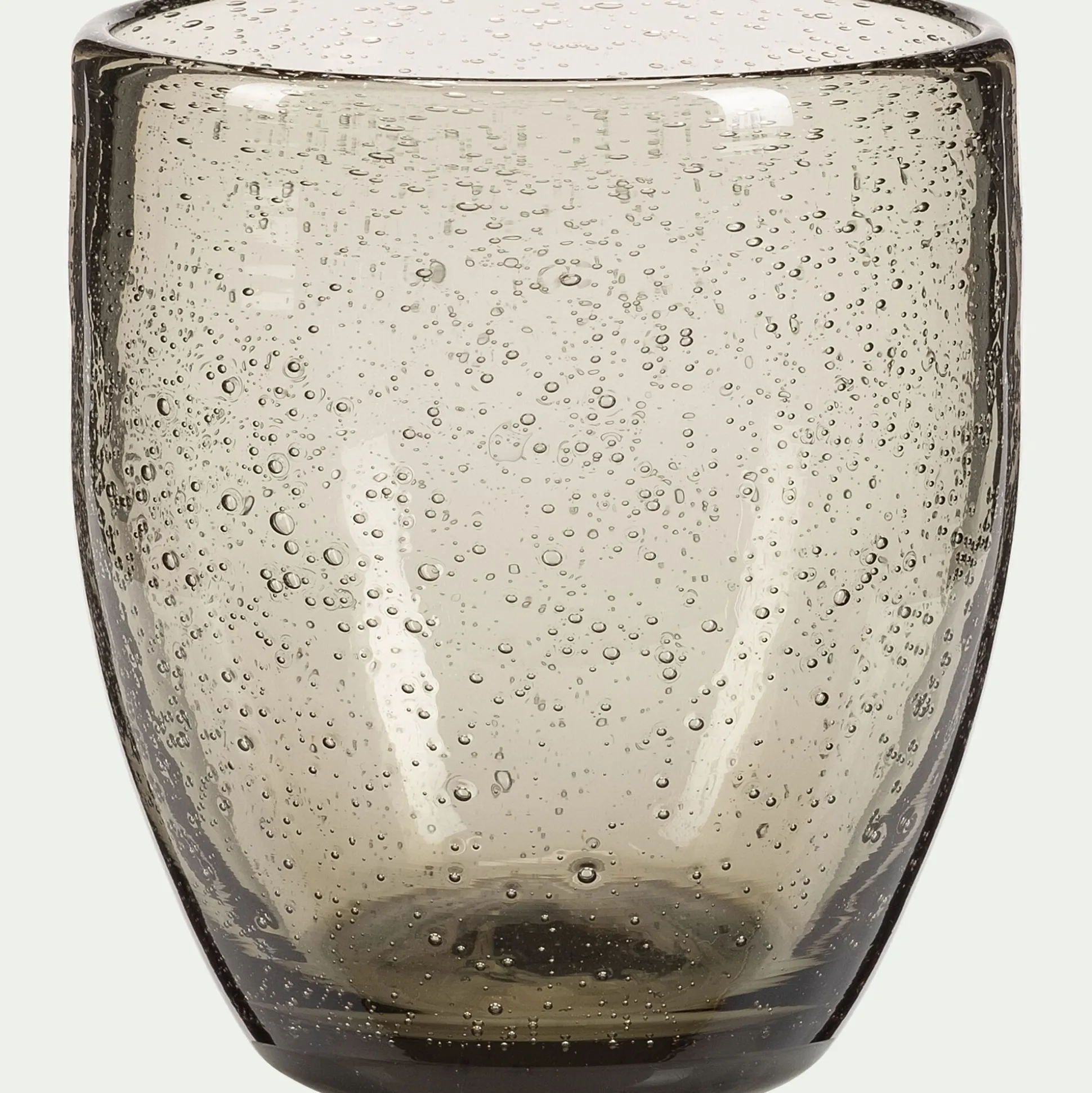 Découvrez Bulla, une magnifique collection réalisée en verre bullé. De petites bulles d’air sont prisonnières de la matière et ajoutent une dimension visuelle supplémentaire au dressage de votre table. Par effet de transparence, les détails sont mis en valeur et offrent un gobelet élégant et original. Teinté dans une douce nuance de gris, ce gobelet à eau relève avec grâce la décoration de la table.