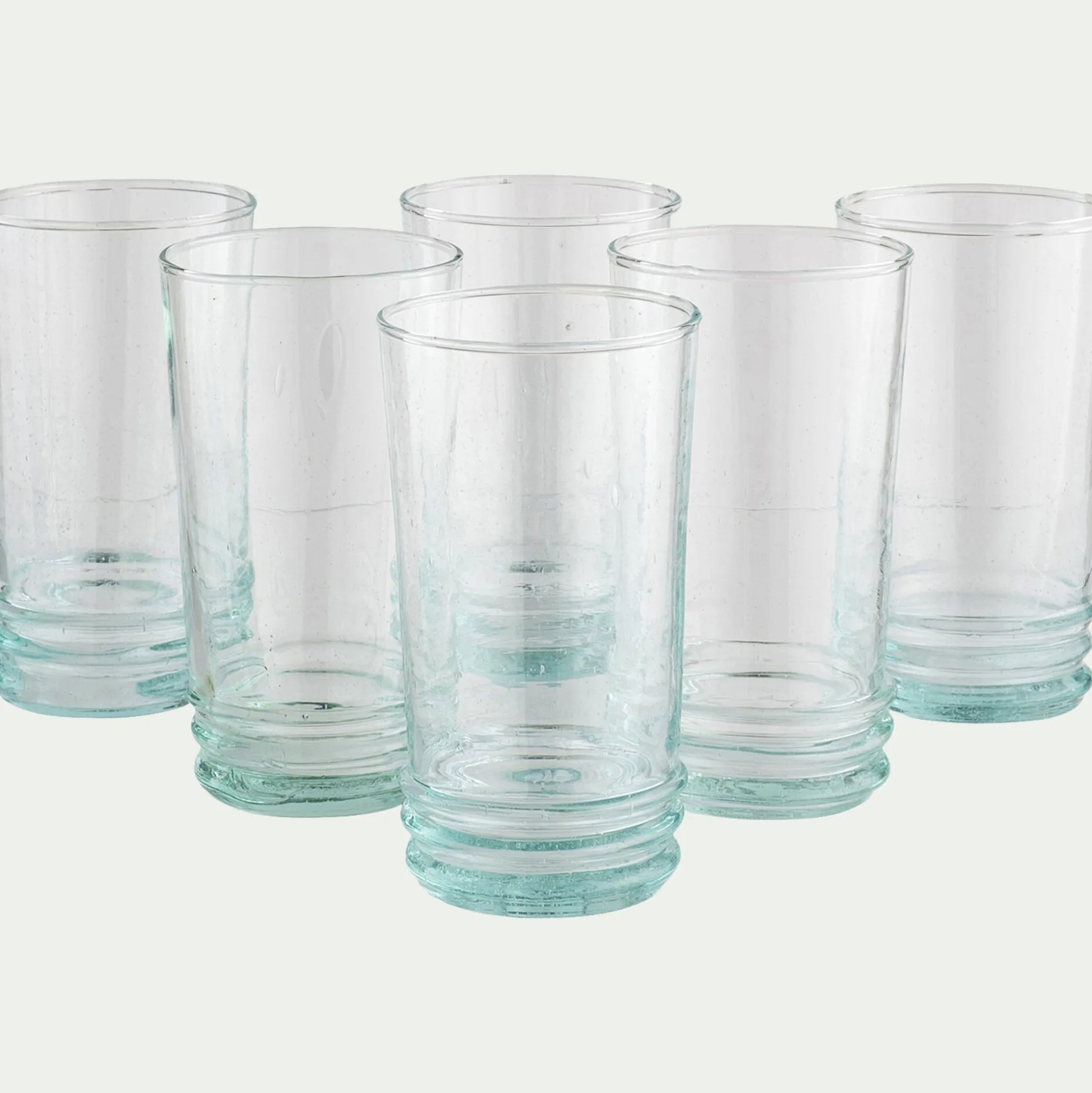 En verre recyclé, les verres Beldi sont soufflés à la bouche et coupés artisanalement à la flamme d’oxygène et de gaz. Les débris repartent à la fusion alors que les verres sont placés dans un four de recuite pendant 3h. Les verres Beldi enchantent par leur design épuré et délicat qui combine les plaisirs et raconte une histoire qui vous transporte sur les bords de la Méditerranée le temps d’un repas.