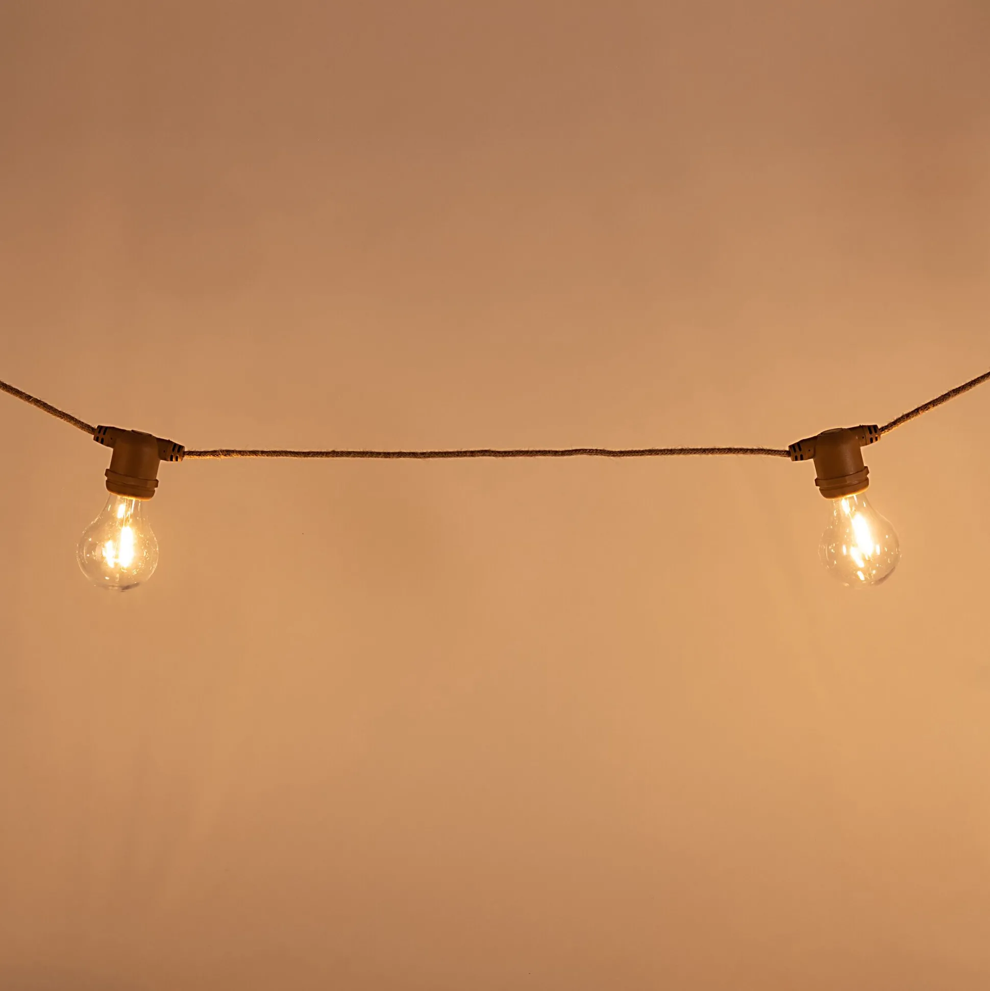 Une guirlande d’extérieur pour illuminer votre jardin. Elle est composée de 10 LED qui diffusent une lumière chaleureuse et conviviale. Un câble en jute qui apporte une touche naturelle et authentique à votre décoration de jardin. Placez la guirlande en hauteur, sur un mur ou au milieu de vos plantes pour les mettre en valeur.