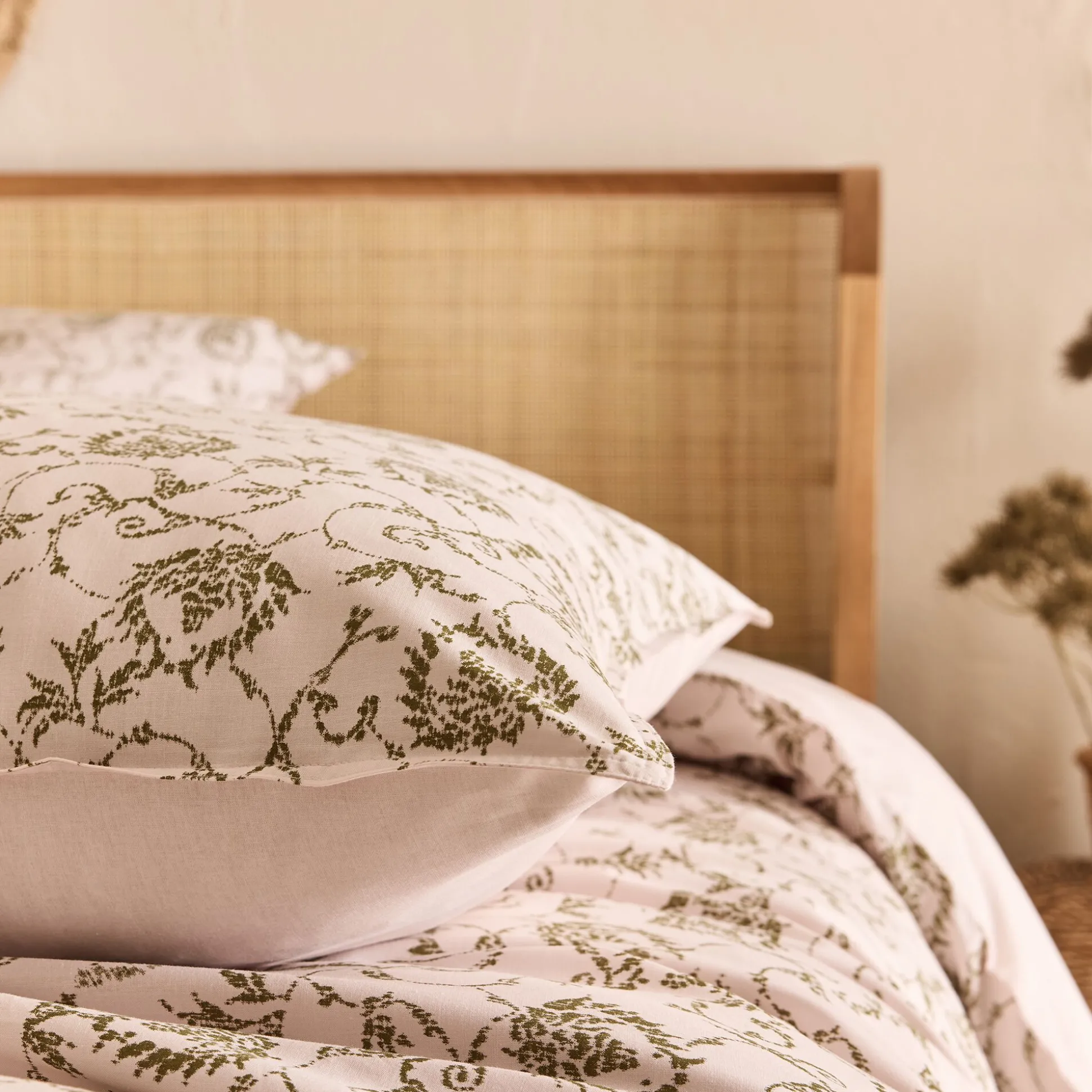 La parure de lit Krisna de 240×220 cm crée une ambiance élégante et apaisante dans la chambre. En coton certifié Oeko-Tex, elle allie douceur et confort au quotidien. Son recto orné d’arabesques baroques beiges sur fond blanc contraste avec son verso uni pour un effet raffiné et équilibré. Fermeture discrète par boutons cachés et deux taies d’oreiller assorties pour une harmonie parfaite : cette parure à motifs est bien pensée sous tous ses aspects.
