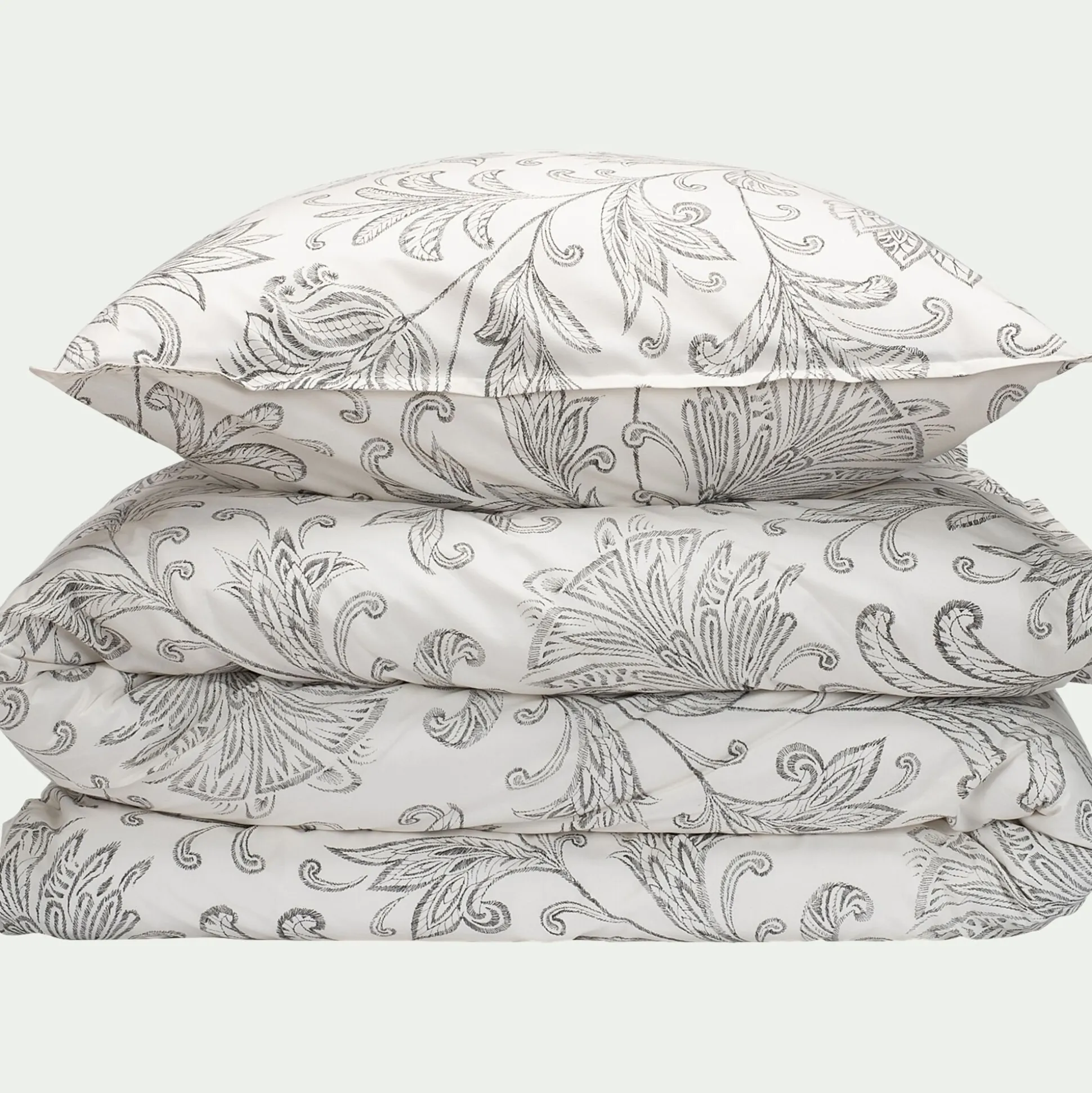 La parure de lit Rani porte le nom de la princesse de l’Inde. En effet, ce linge de lit arbore un motif floral inspiré de la culture asiatique. Les fleurs et plantes sont réalisées avec une grande finesse dans un style oriental au charme certain. Cette parure se compose d’une housse de couette de 240×220 cm, ainsi que de deux taies d’oreiller carrées. L’ensemble est non seulement élégant, mais aussi très confortable. Réalisée en percale de coton avec un tissage serré de 80 fils, cette parure à motifs offre douceur au dormeur.