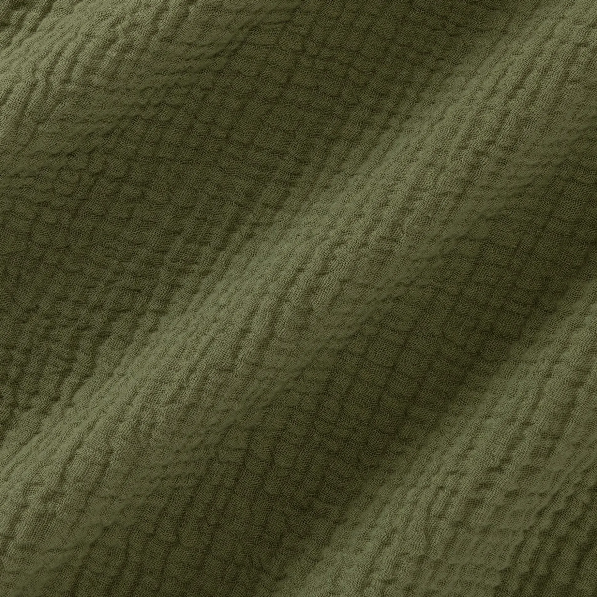 Aménagez une chambre chaleureuse et agréable à vivre avec la parure de lit Baleti. Confectionnée en double gaze de coton, cette parure verte arbore une texture froissée, à la fois charmante et très pratique d’entretien. La double gaze vient apporter une touche de confort sans pareil à votre lit, tissu doux et réconfortant que l’on ne se lasse pas de toucher. Cette parure unie se compose d’une grande housse de couette de 260×240 cm. Celle-ci s’accompagne de deux taies d’oreiller assorties de 63×63 cm. Un ensemble élégant, à la fois chic et bohème, qui apporte à la chambre charme et caractère.
